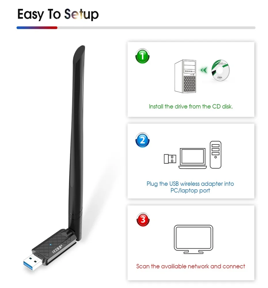 2.Stable Performance With 6dBi Antenna, wireless adapter offers up to 1300Mbps Wi-Fi speeds in the signal strength.