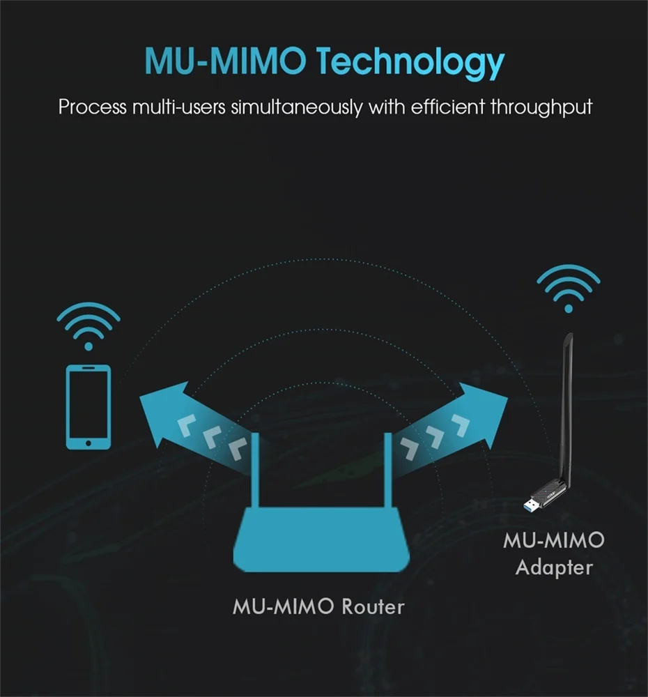 5.MU-MIMO T With advanced RTL8812BU chipset, MU-MIMO technology ensures more devices process data simultaneously, no more delay in sequence.