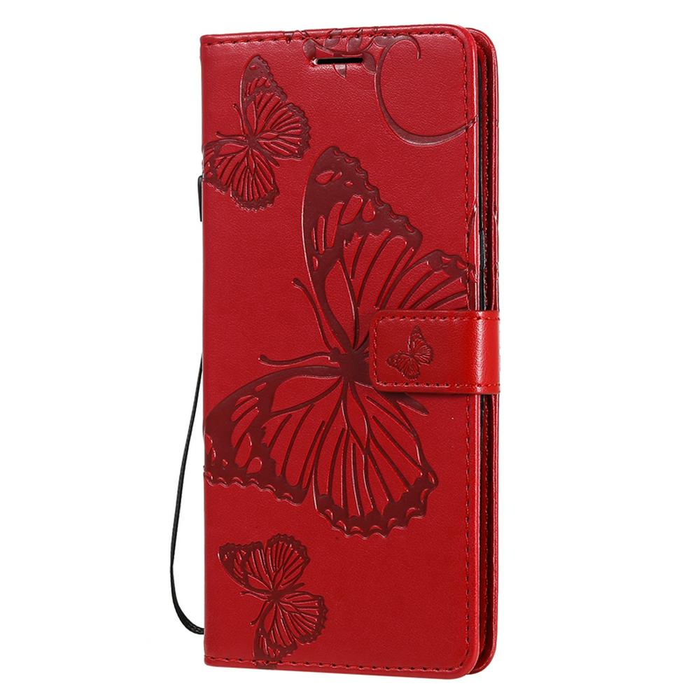 Embossed Butterflies Pattern Wrist Strap Style Anti-Drop Side Flip PU Leather + Soft TPU Stand with Magnetic Buckle and Card Slots Wallet Protective Case for LG V60 ThinQ 5G
