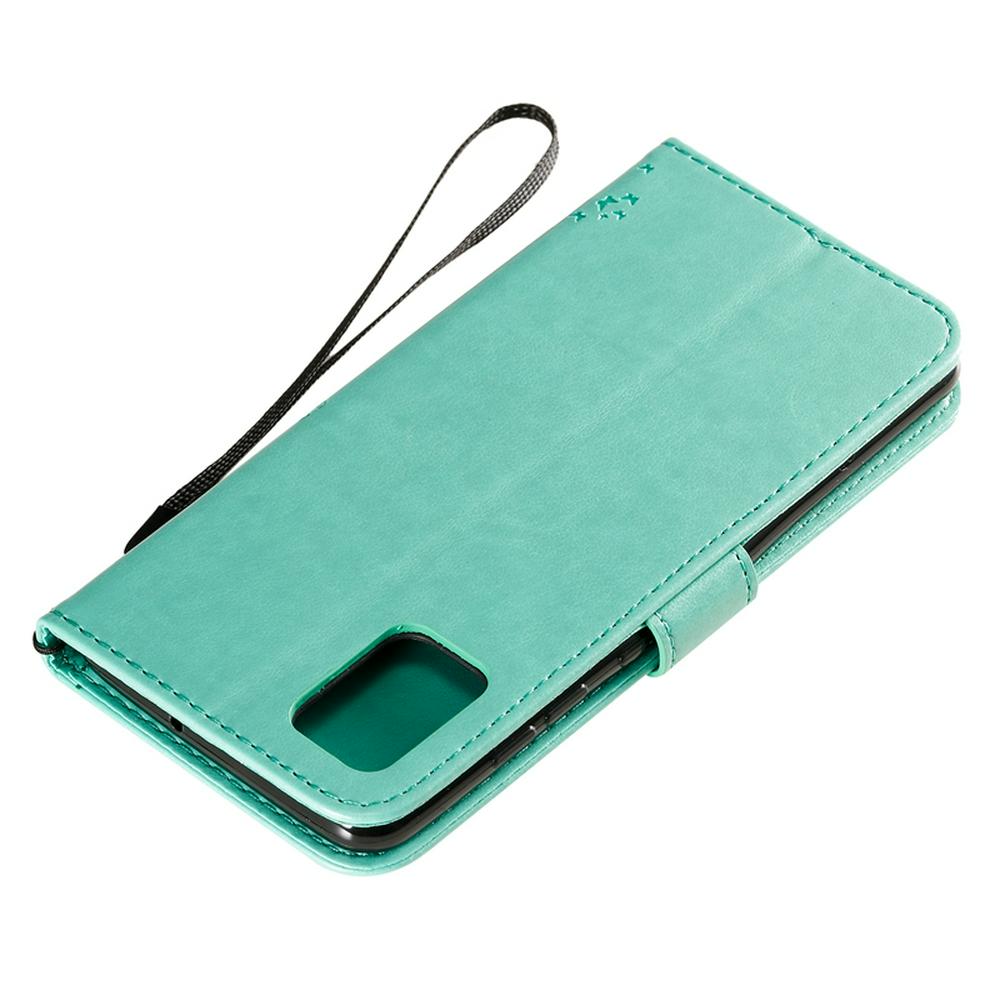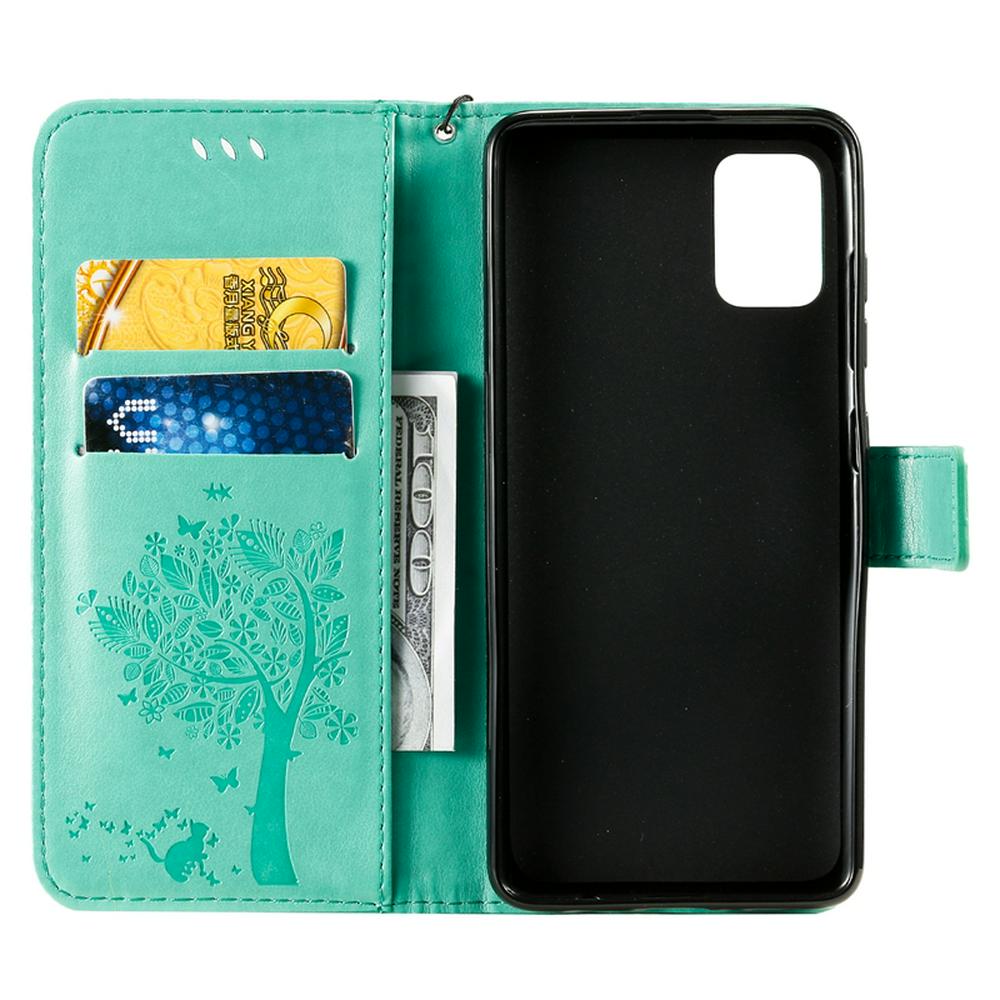 Embossed Cat Tree Pattern Wrist Strap Style Shockproof Side Flip PU Leather + Soft TPU Card Slots with Magnetic Buckle and Stand Wallet Case for Samsung Galaxy A51
