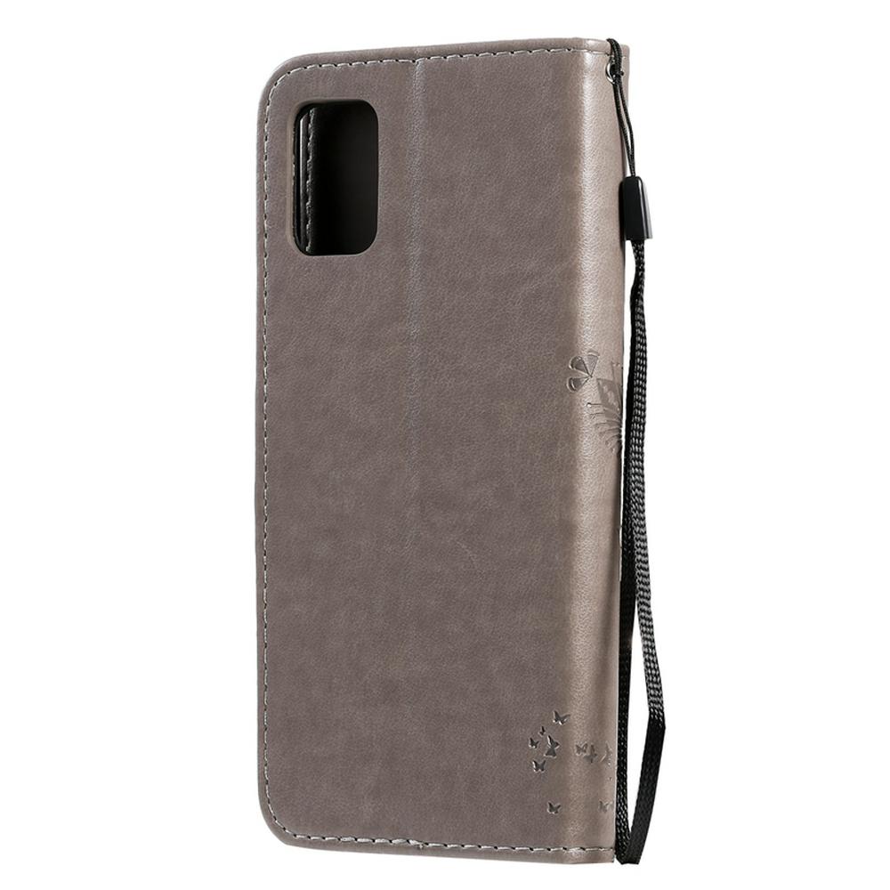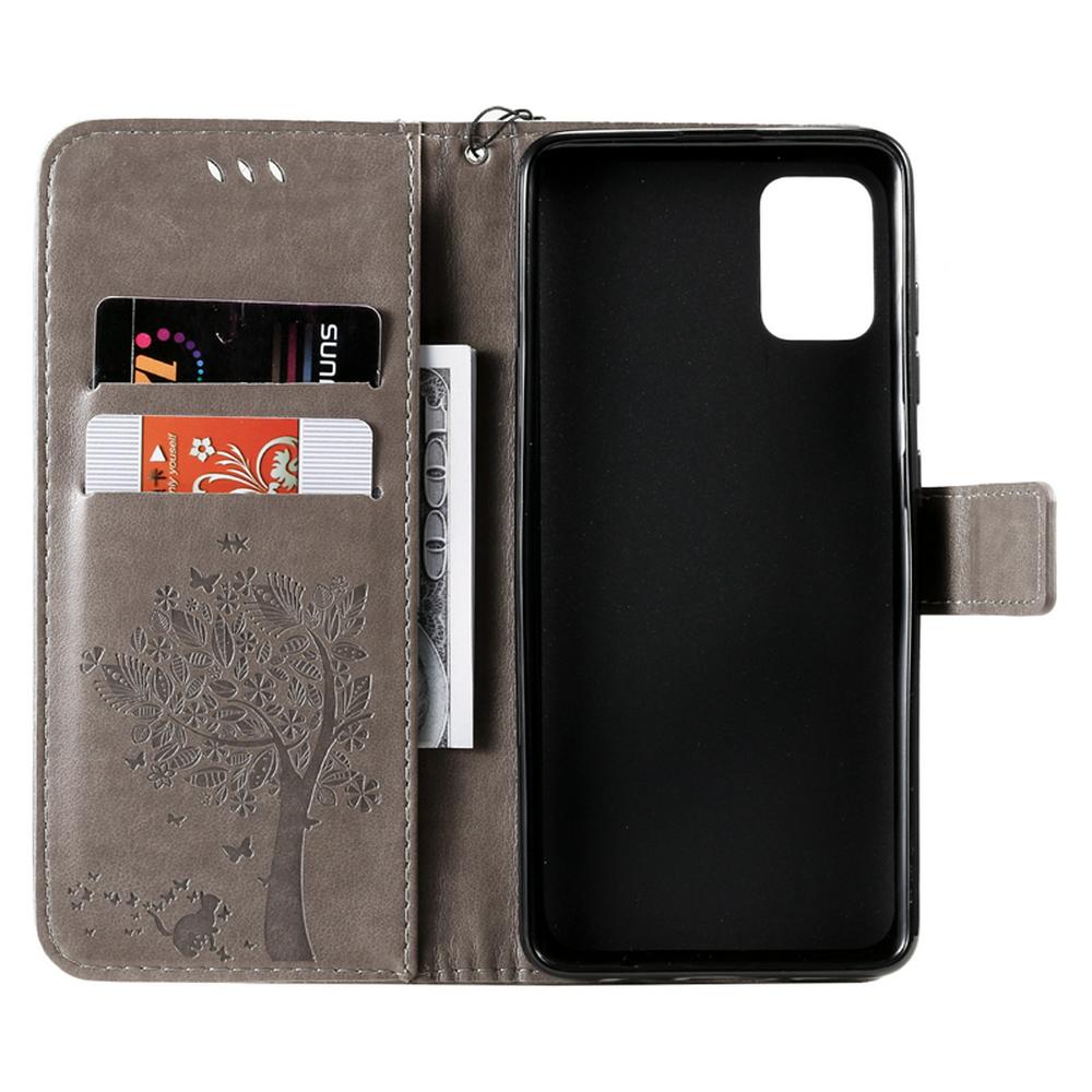 Embossed Cat Tree Pattern Wrist Strap Style Shockproof Side Flip PU Leather + Soft TPU Card Slots with Magnetic Buckle and Stand Wallet Case for Samsung Galaxy A51