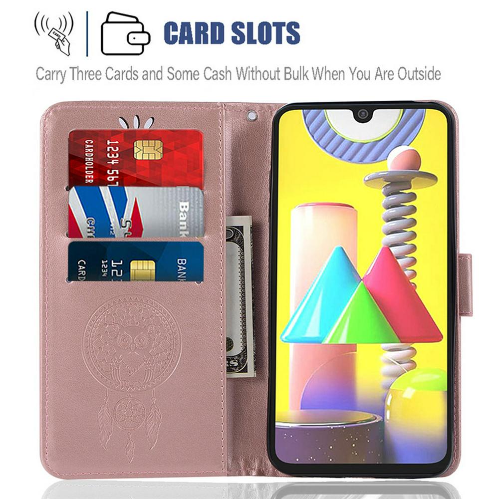 Embossed Dreamcatcher Pattern Wrist Strap Style Shockproof Side Flip PU Leather + Soft TPU Card Slots with Magnetic Buckle and Stand Wallet Case for Samsung Galaxy M31