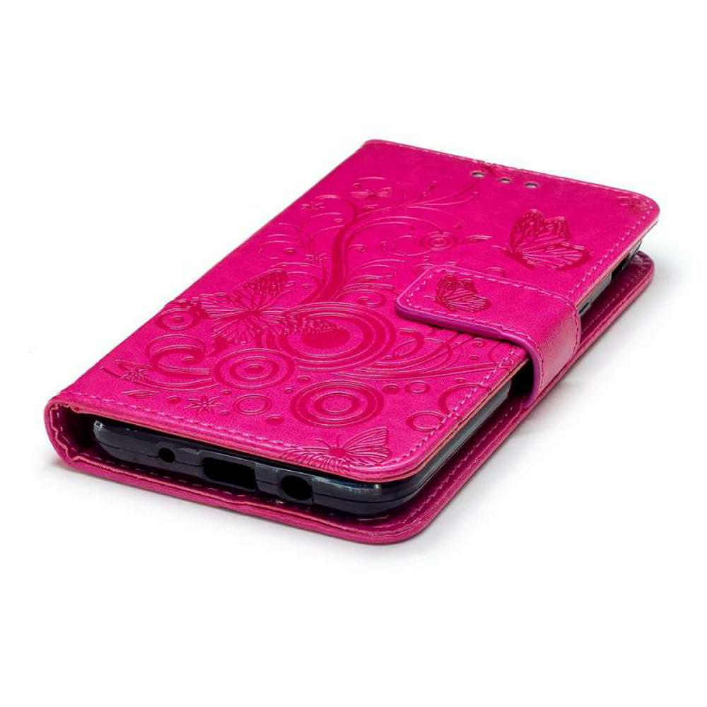 Embossed Flower Butterfly Pattern Shockproof Side Flip PU Leather + Soft TPU Wrist Strap with Card Slots Stand and Magnetic Buckle Wallet Protective Case for Samsung Galaxy J3 (2018) / J3 Star