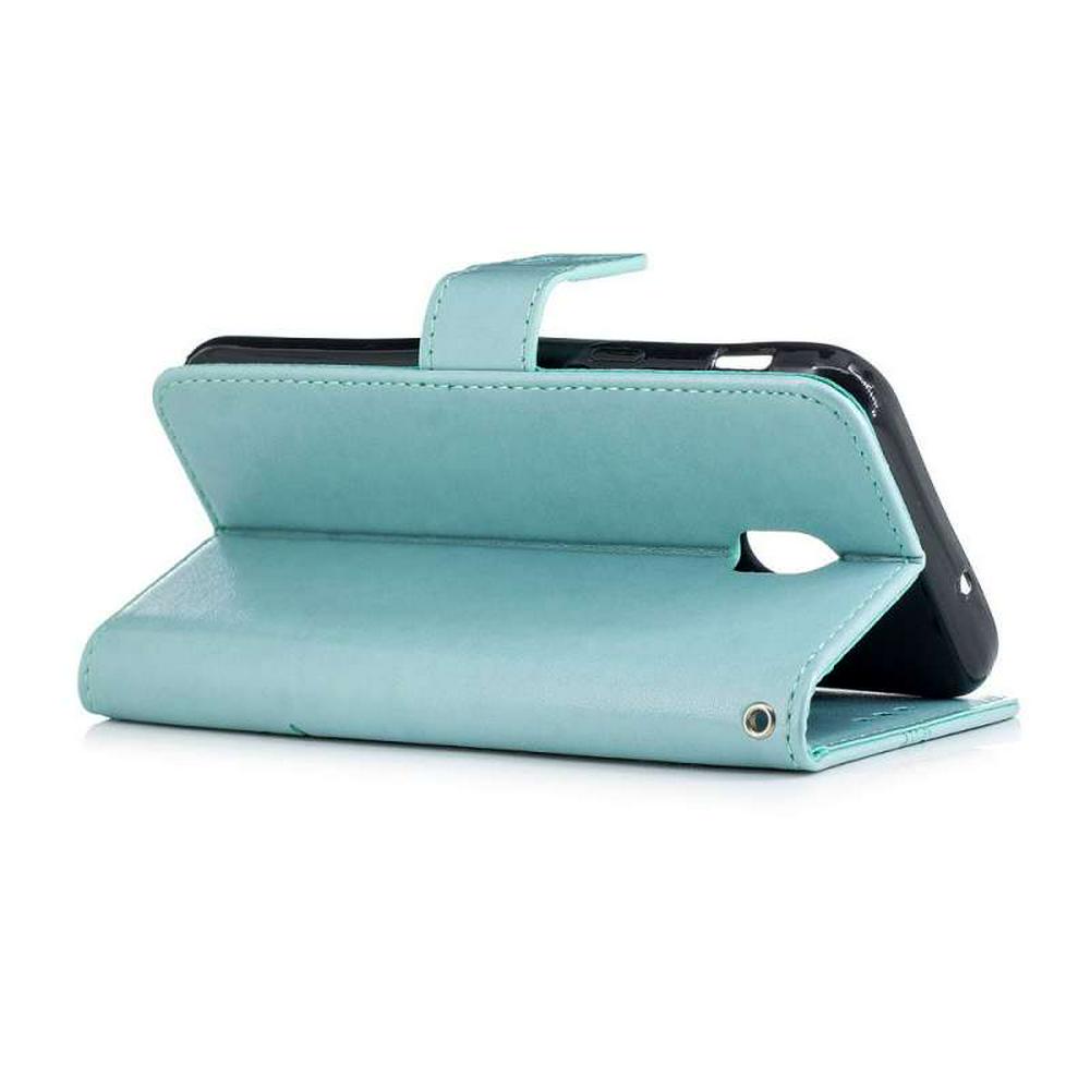 Embossed Flower Butterfly Pattern Shockproof Side Flip PU Leather + Soft TPU Wrist Strap with Card Slots Stand and Magnetic Buckle Wallet Protective Case for Samsung Galaxy J3 (2018) / J3 Star