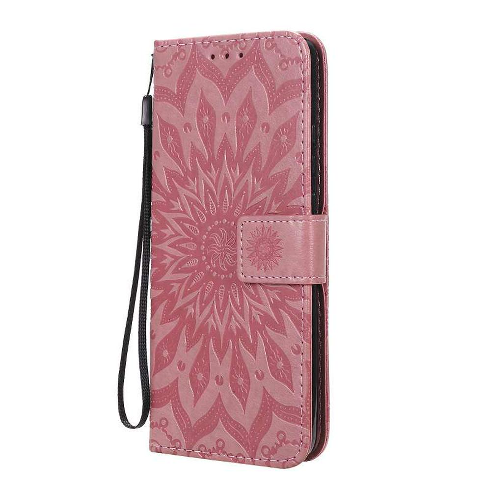 Embossed Flower Pattern Wrist Strap Style Shockproof Side Flip PU Leather + Soft TPU Card Slots with Magnetic Buckle and Stand Wallet Case for Huawei P40 Pro