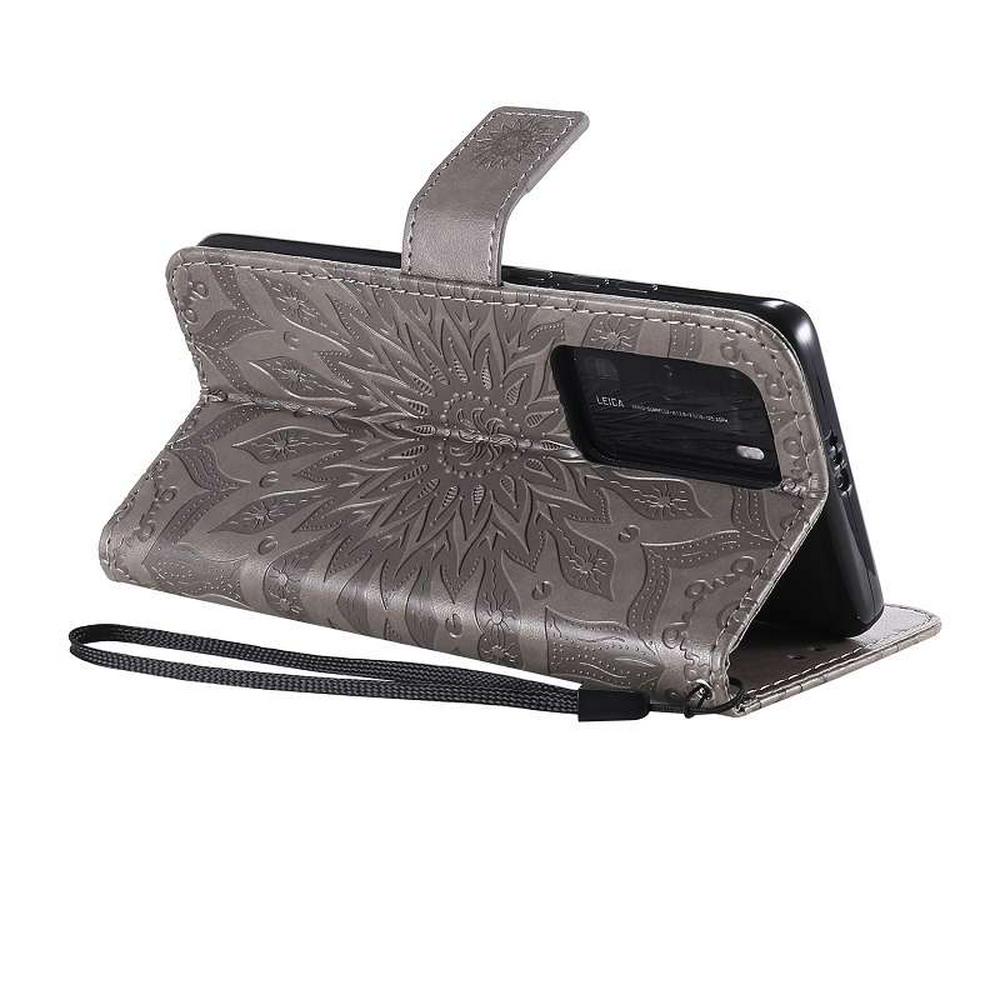 Embossed Flower Pattern Wrist Strap Style Shockproof Side Flip PU Leather + Soft TPU Card Slots with Magnetic Buckle and Stand Wallet Case for Huawei P40 Pro