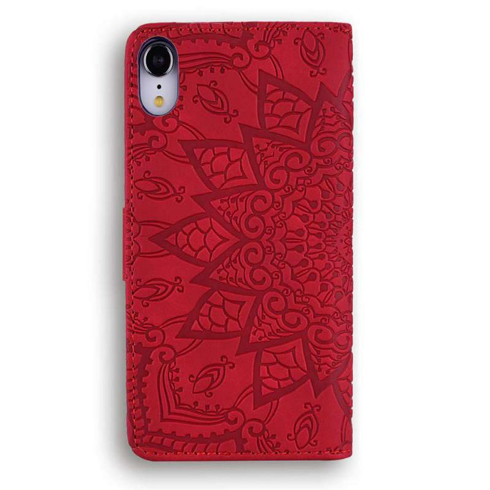 Embossed Wallet Phone Case for iPhone XR 6.1, Pattern Texture Leather Phone Cover With Magnetic Buckle