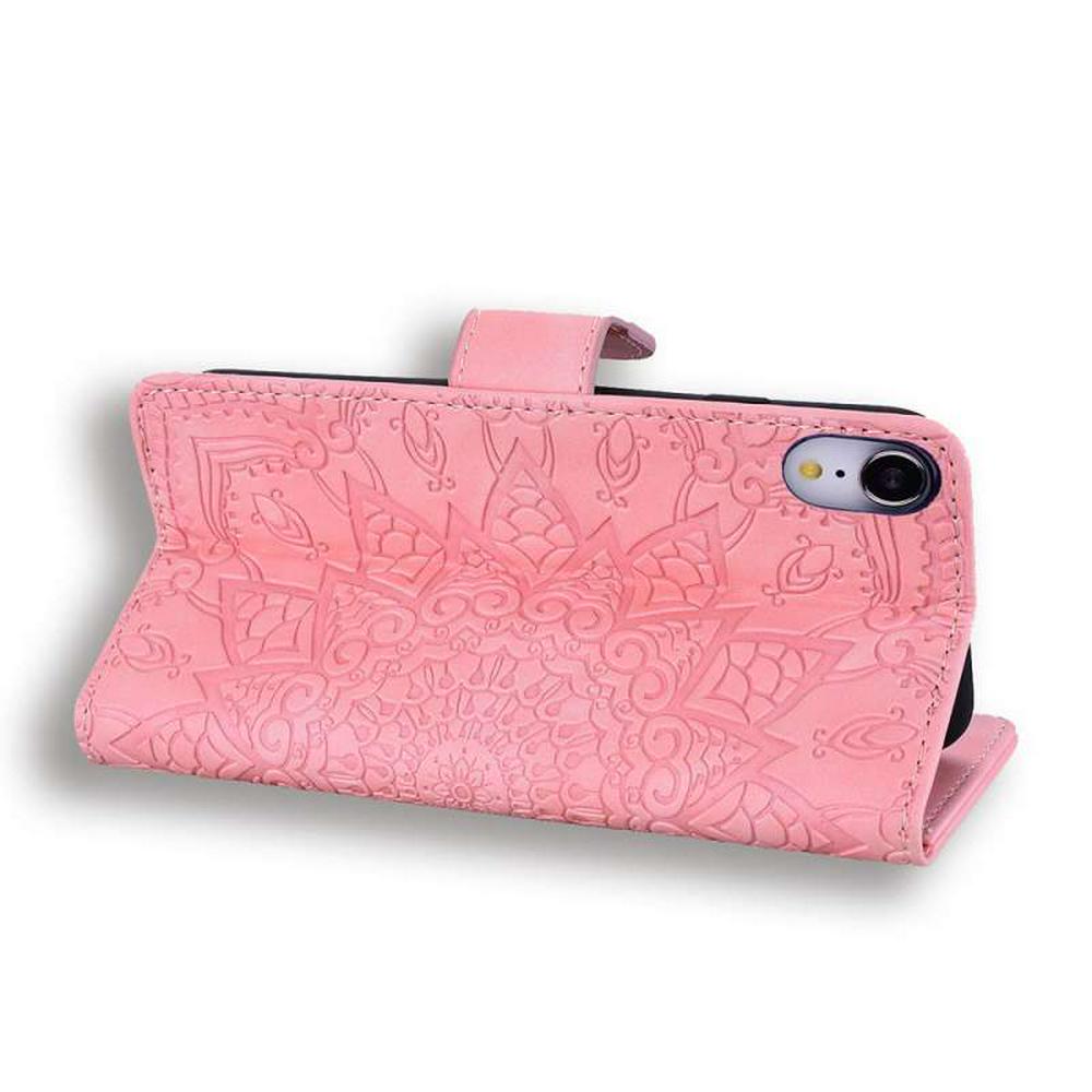 Embossed Wallet Phone Case for iPhone XR 6.1, Pattern Texture Leather Phone Cover With Magnetic Buckle