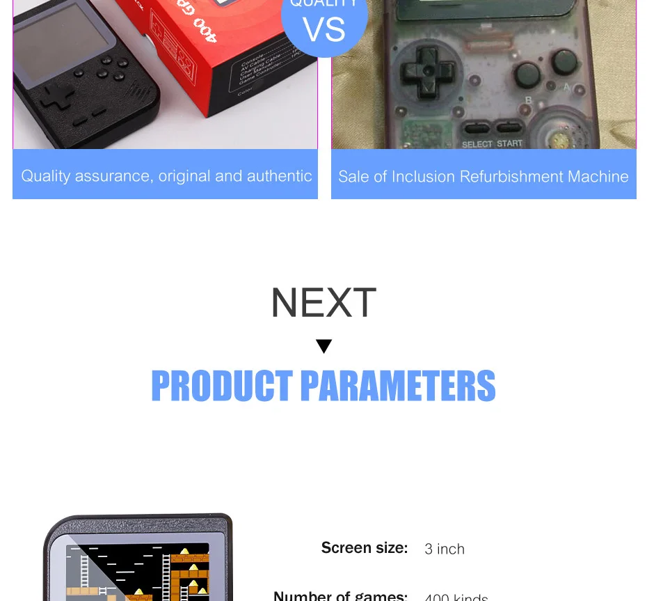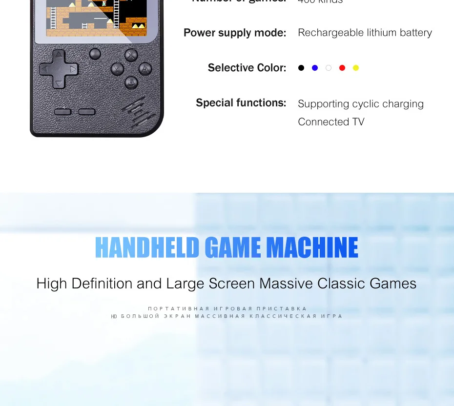 Game: supports 8-bit games, integrated games of 400 (a series of classic gamesTetris)