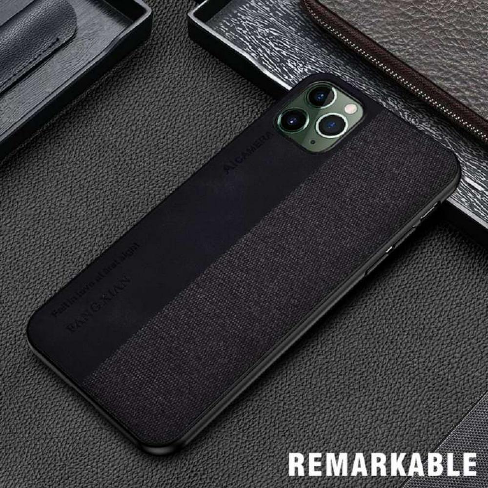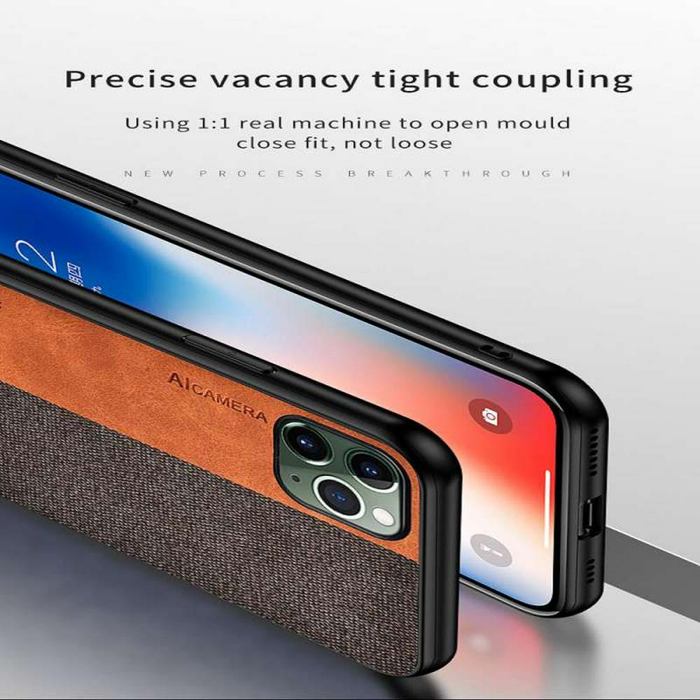 Fabric Coated Hard Phone Case for iPhone 11 Pro Max, Splice Style Phone Cover Debossed with Letters