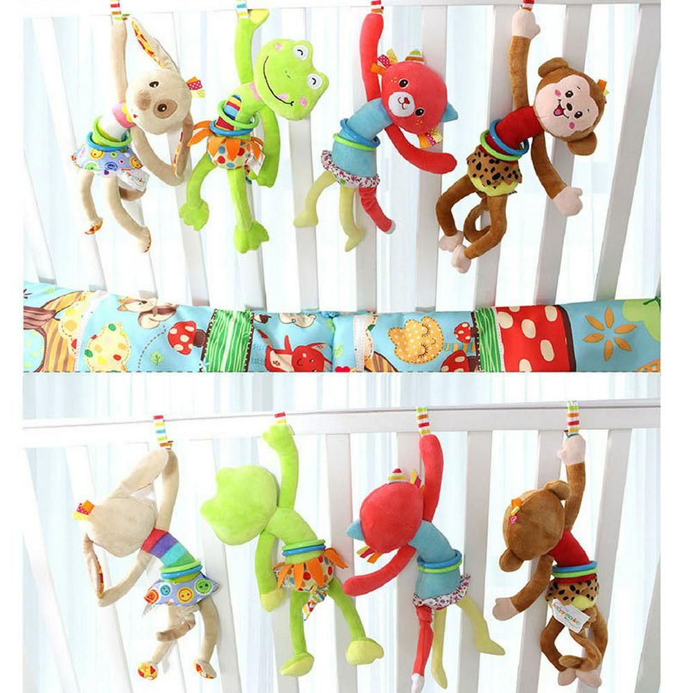 Fashion Cartoon Animal Dog/Frog/Monkey/Cat Pull Shock Bell Infant Crib Hanging Plush Toy Gift for 0-3 Years Baby