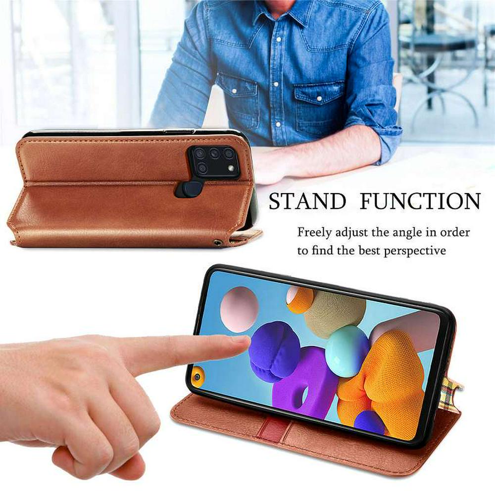 Fashion Magnetic Closure Cover with Card Slots Pocket PU Leather Shockproof Wallet Phone Case for Samsung Galaxy A21s