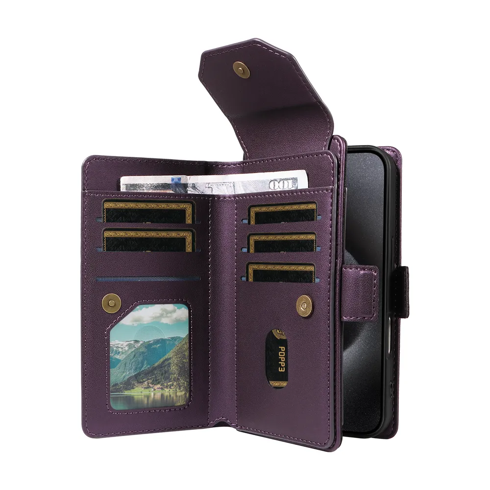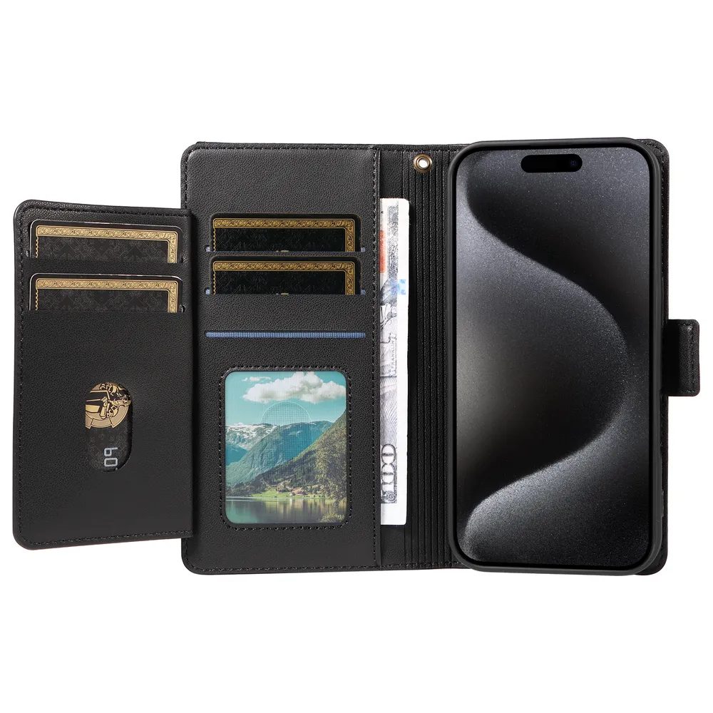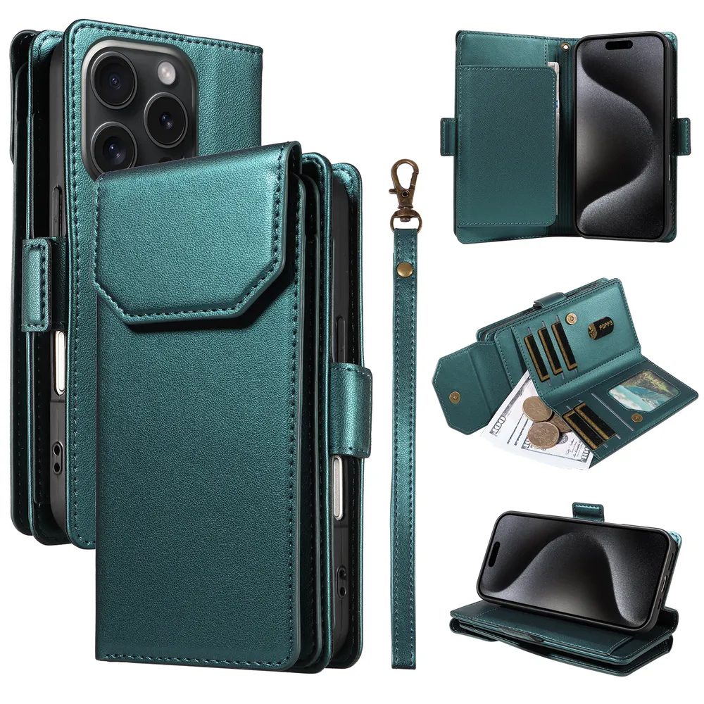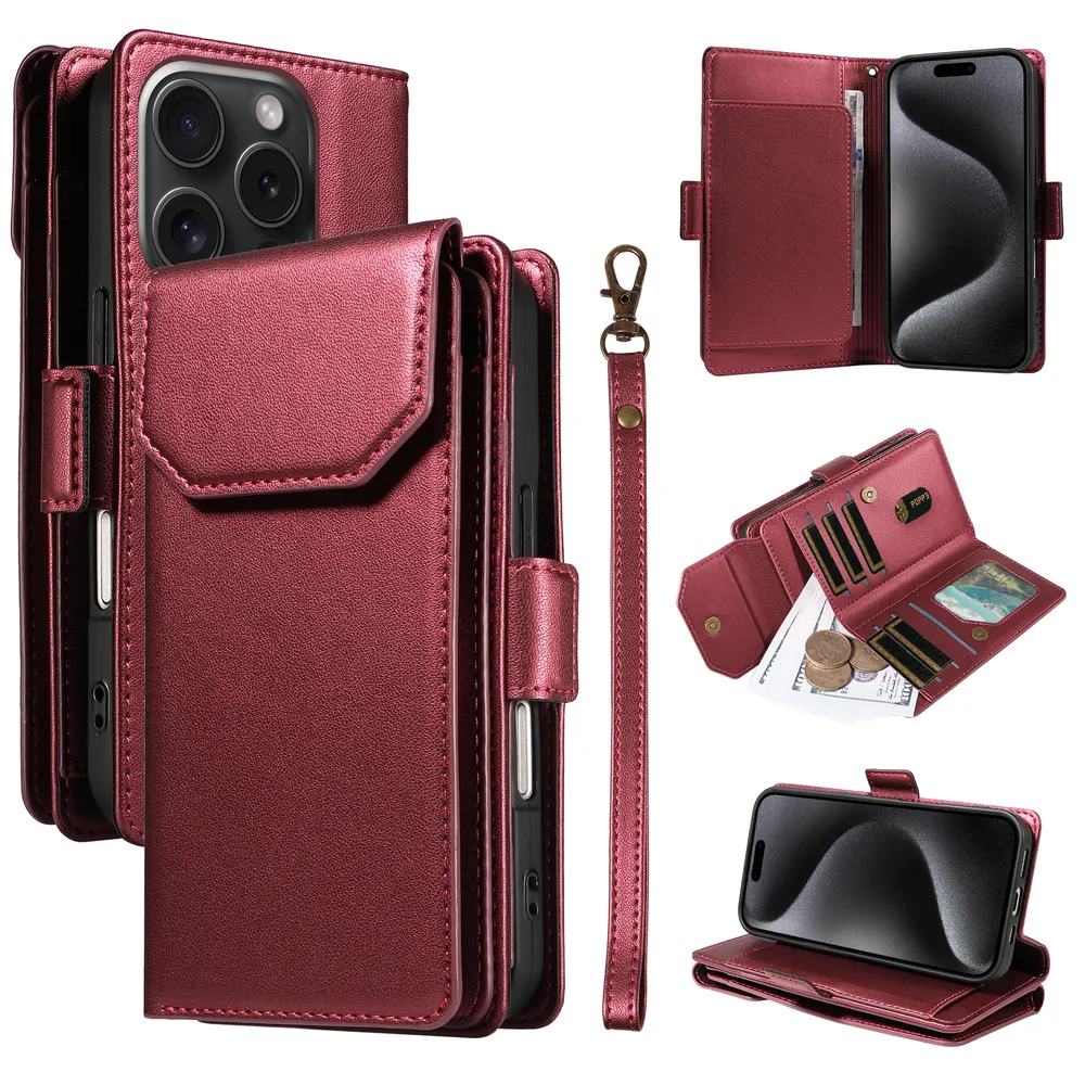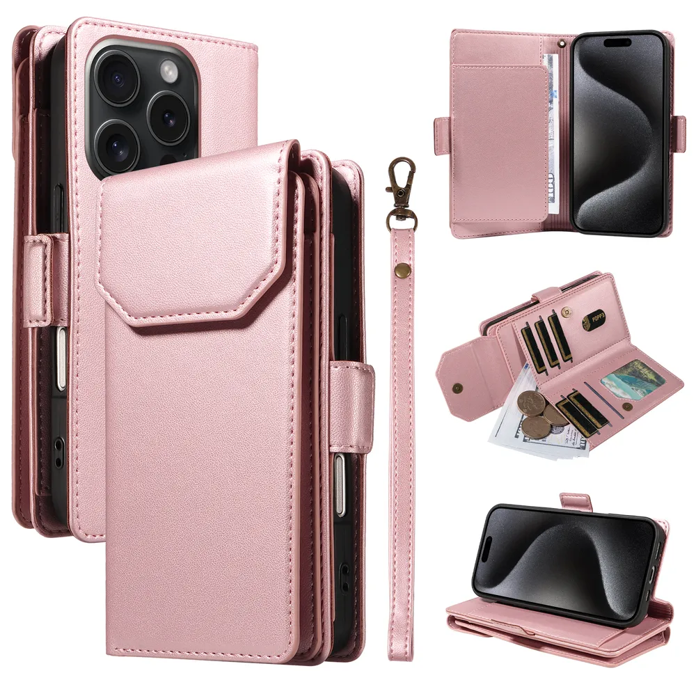 Fashion Multi Card Wallet Wrise Strap Phone Case For iPhone 15 Pro
