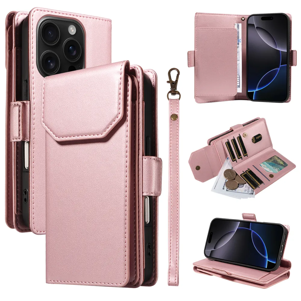 Fashion Multi Card Wallet Wrise Strap Phone Case For iPhone 16 Pro