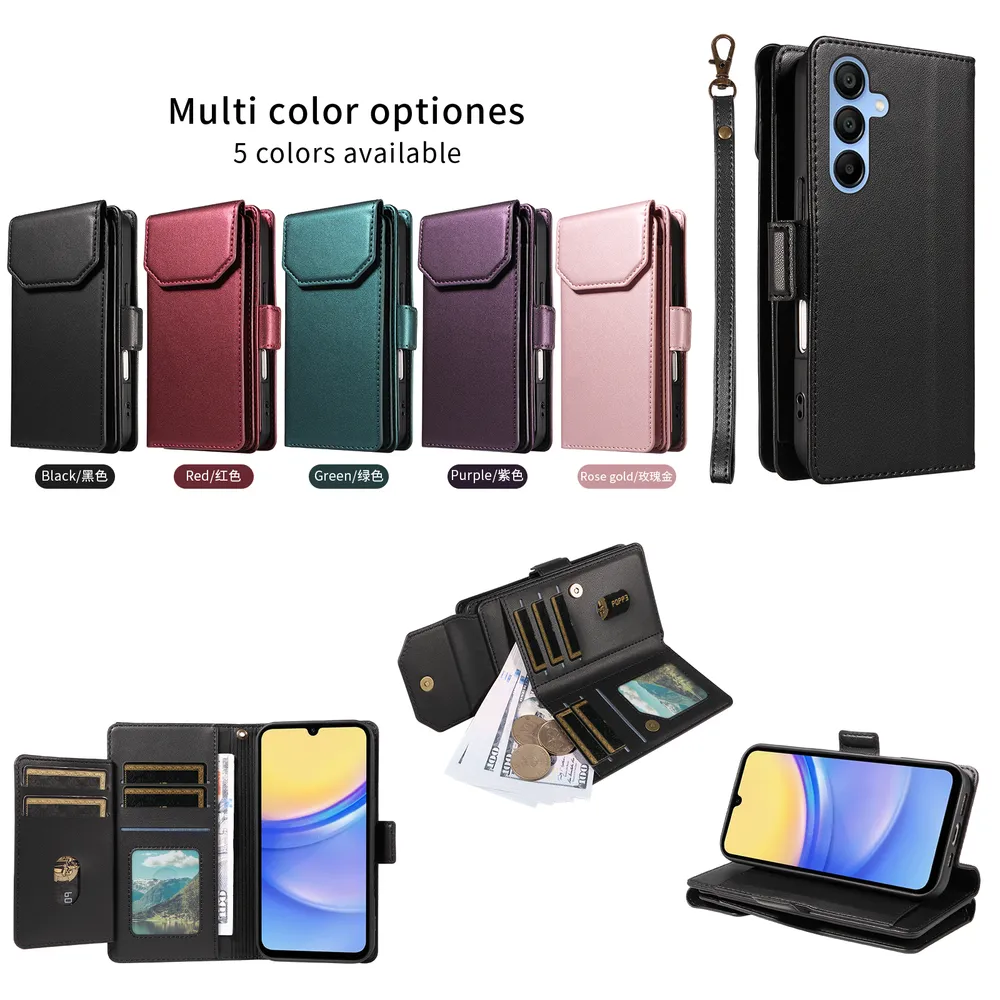Fashion Multi Card Wallet Wrise Strap Phone Case For Samsung Galaxy A15