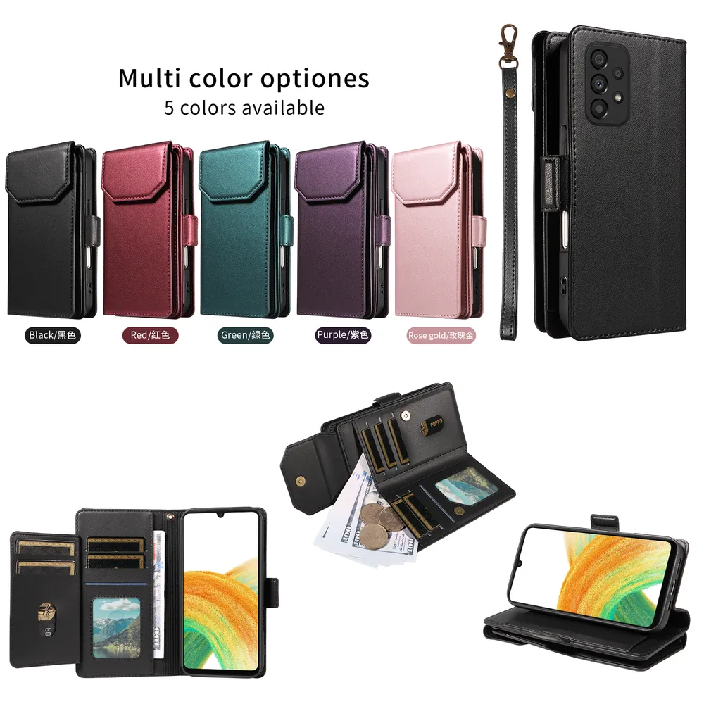 Fashion Multi Card Wallet Wrise Strap Phone Case For Samsung Galaxy A33 5G