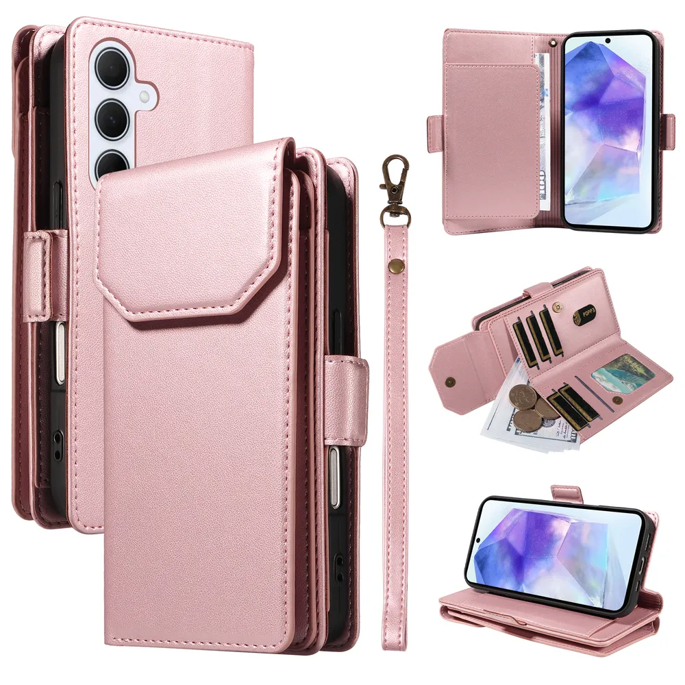 Fashion Multi Card Wallet Wrise Strap Phone Case For Samsung Galaxy A55 5G