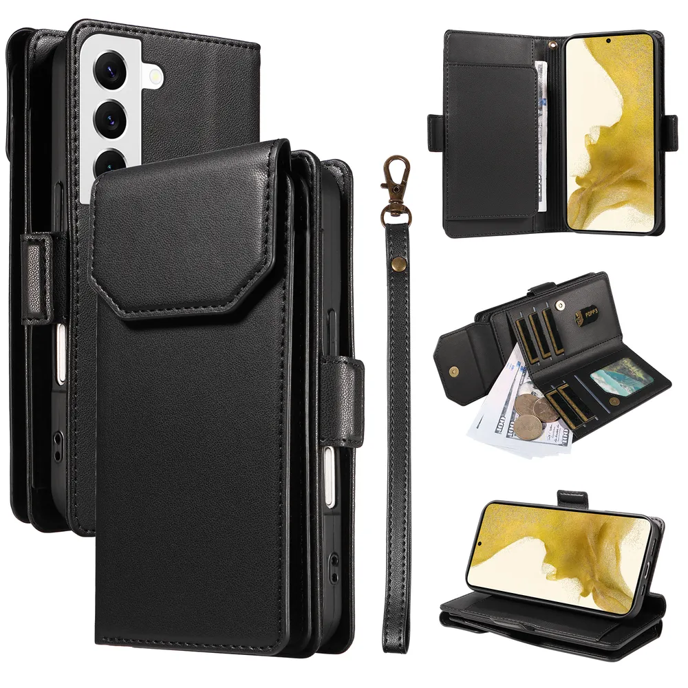 Fashion Multi Card Wallet Wrise Strap Phone Case For Samsung Galaxy S22 Plus