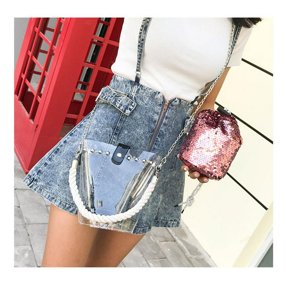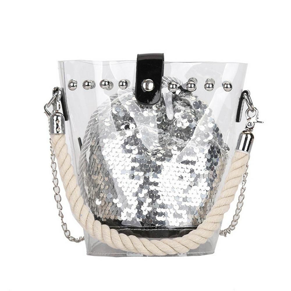 Fashionable Bucket Bag with Sequin Purse Inside Daily Casual Handbag Set