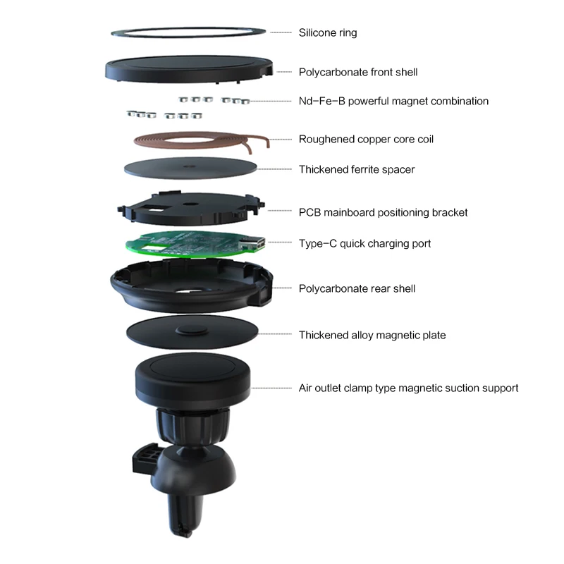 The 360-degree viewfinder adjustment of the tuyere clip bracelet can be used as a wireless charge of the navigation bracelet, and a powerful magnetic attraction function, so that your mobile phone can better absorb and wireless charge. Better let the pleasure of wireless charging.