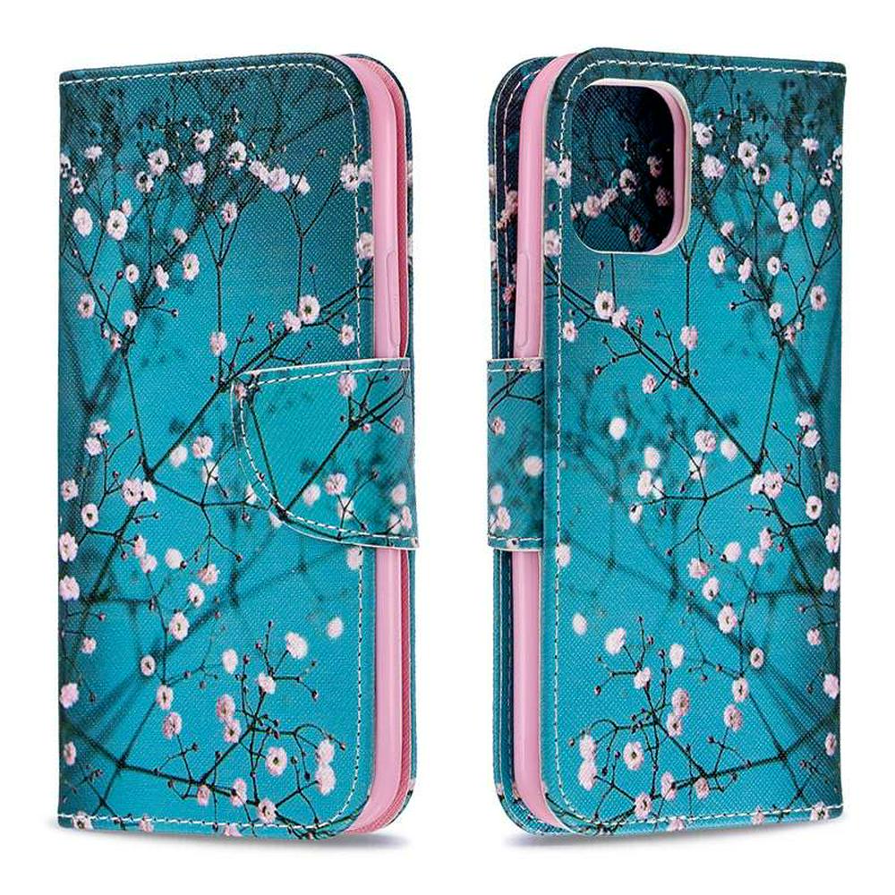Feather Plum Giraffe Colored Painting Shockproof PU Leather + Soft TPU with Card Slots Stand Wallet Protective Case for Apple 2019 (5.8)