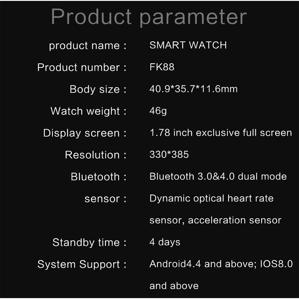 Original FK88 Smart Watch 1.78 Inch Full Touch Bluetooth Call Women Men Smartwatch Sports Track for Android IOS PK
