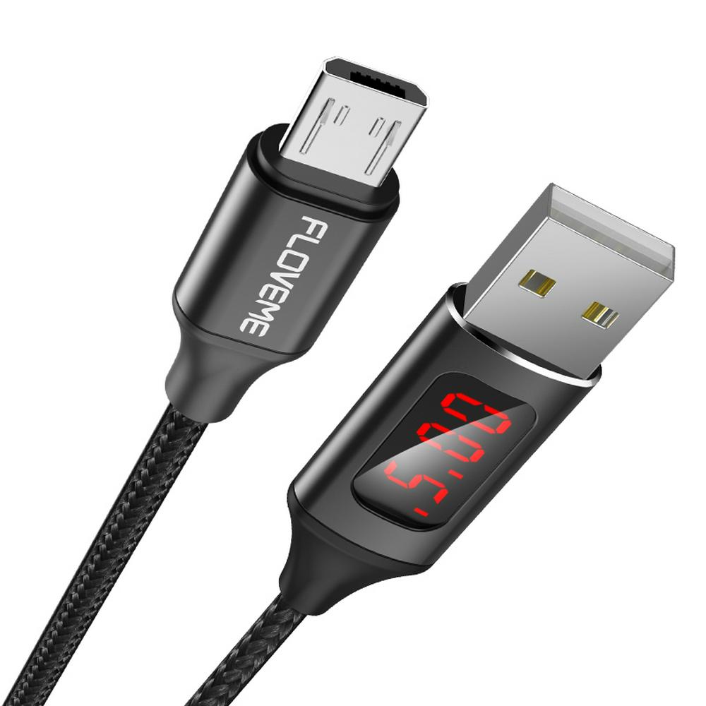 FLOVEME 1m Micro USB Interface Nylon Braided LED Digital Display 2.4A Charging Data Sync USB Cable for Devices with Micro USB Interfaces