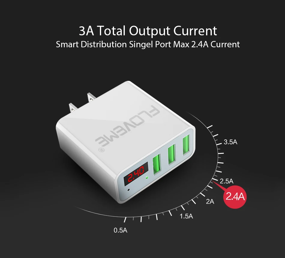 | Feature 1 | 3A Fast Charging+Smart Digital Display+3 Ports USB Output Charger |
