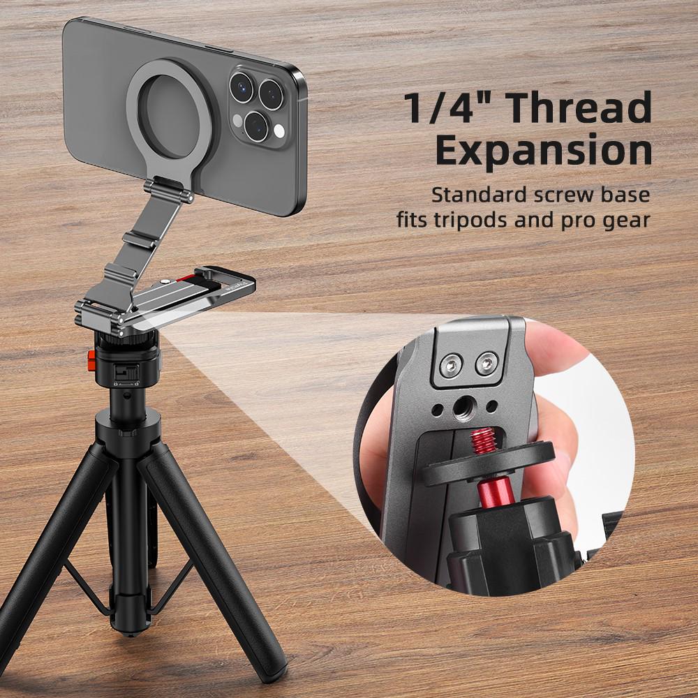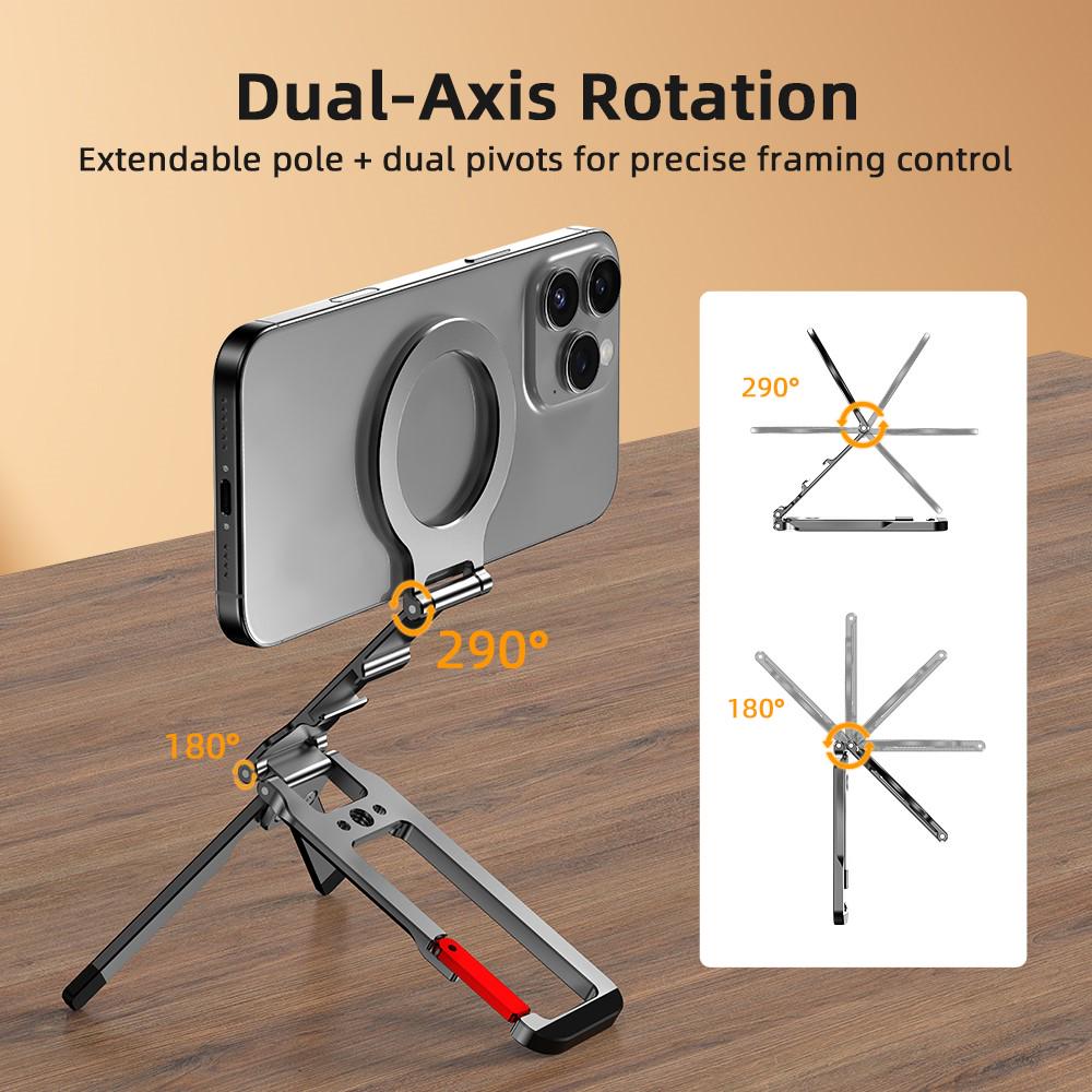 【Flexible Multi-Angle Design】Easily fold, extend, and adjust the stand to switch between overhead and low-angle shots in seconds.