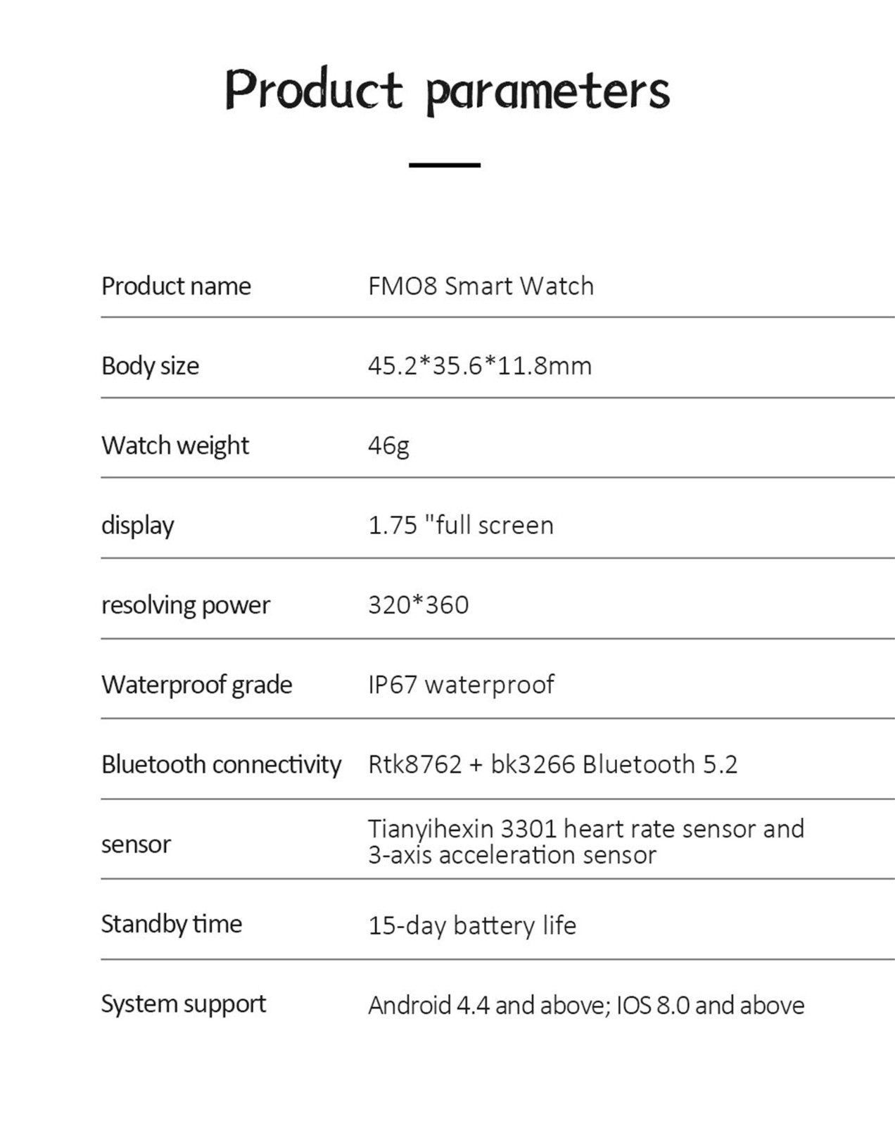 FM08 Bluetooth Color Screen Call Smart Watch Full Screen Fitness Smartwatch