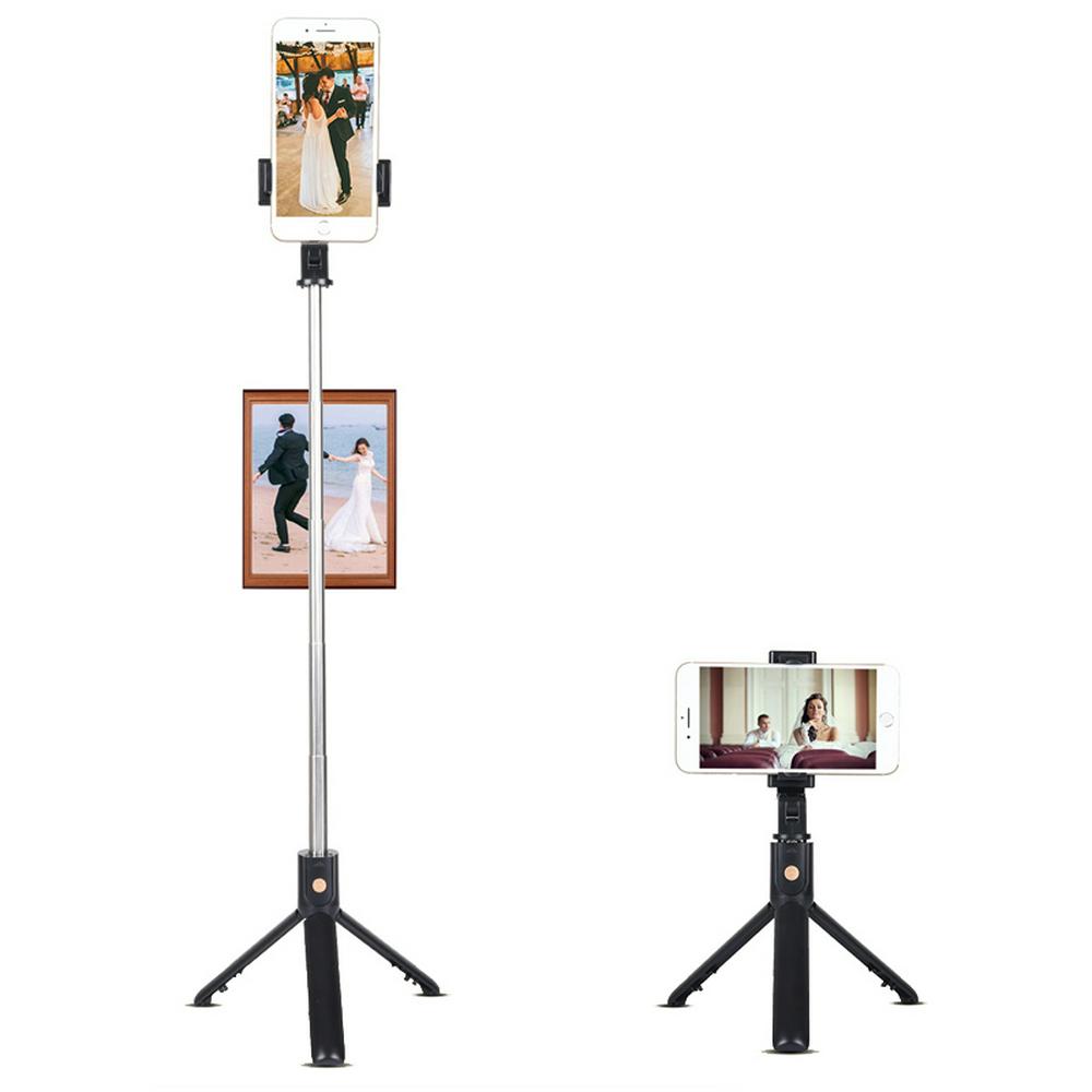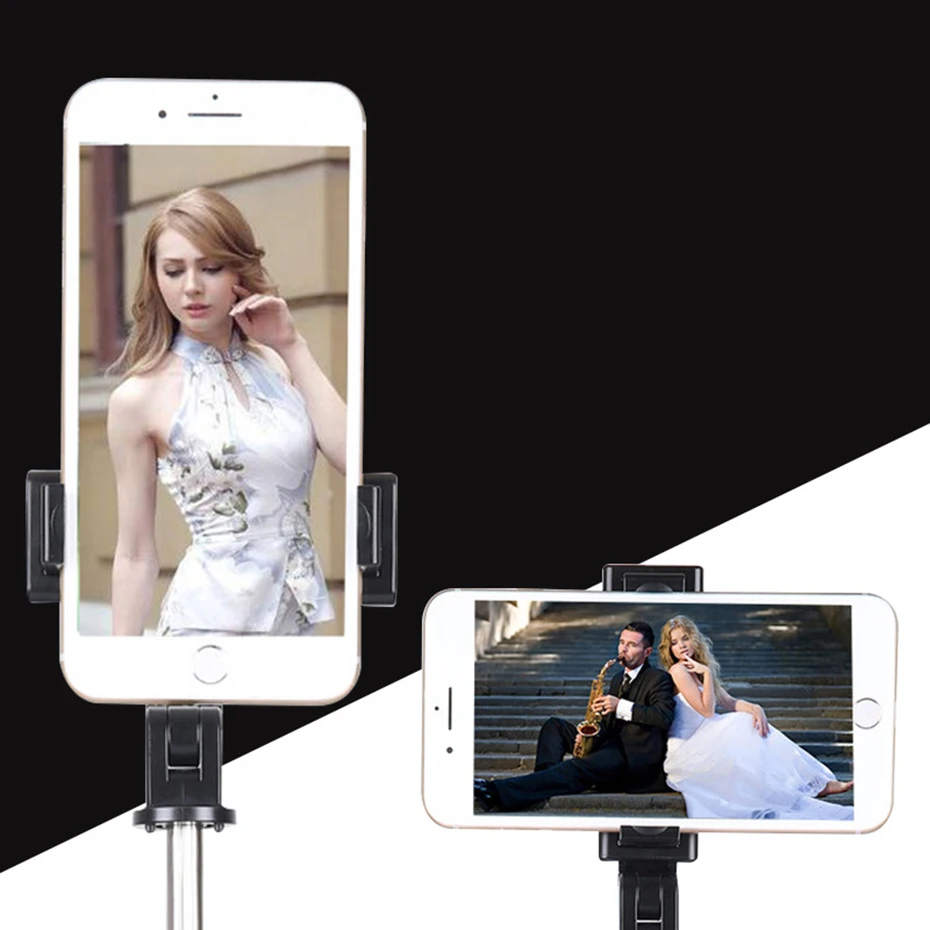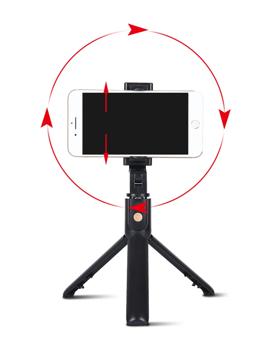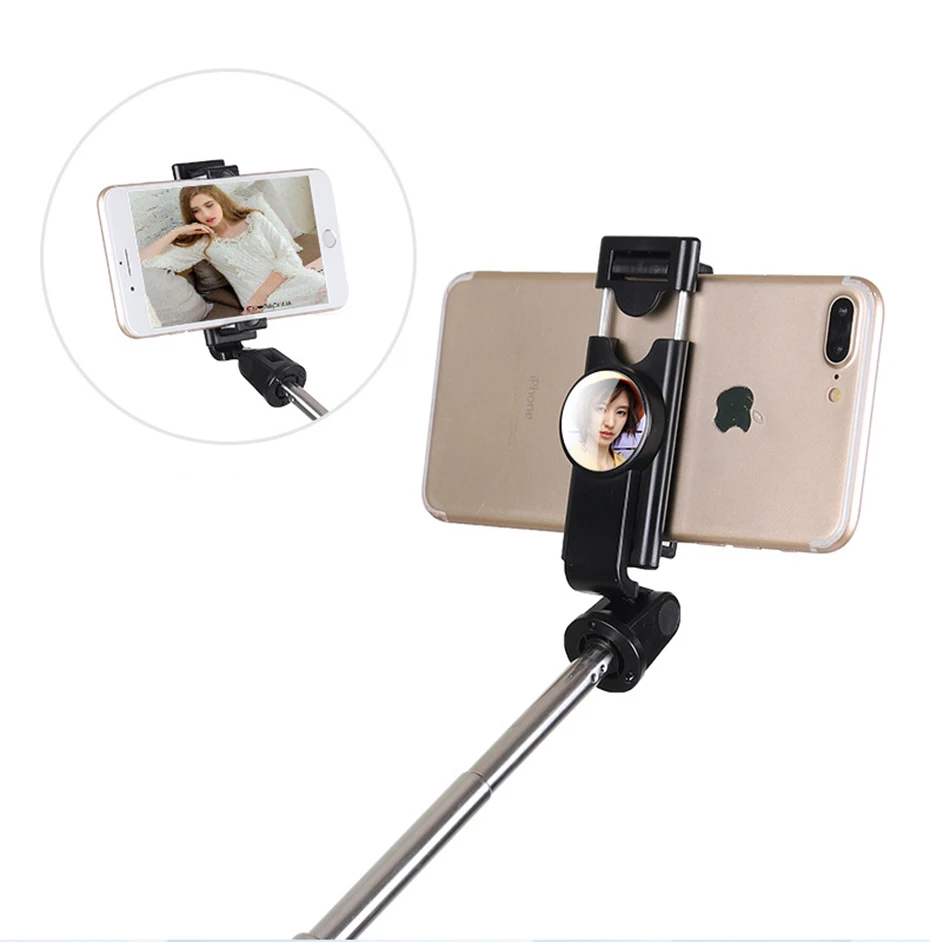 Foldable 3 in 1 Selfie Stick Tooth Stand Holder Selfiestick Mirror Remote Control Bluetooth Phone Tripod