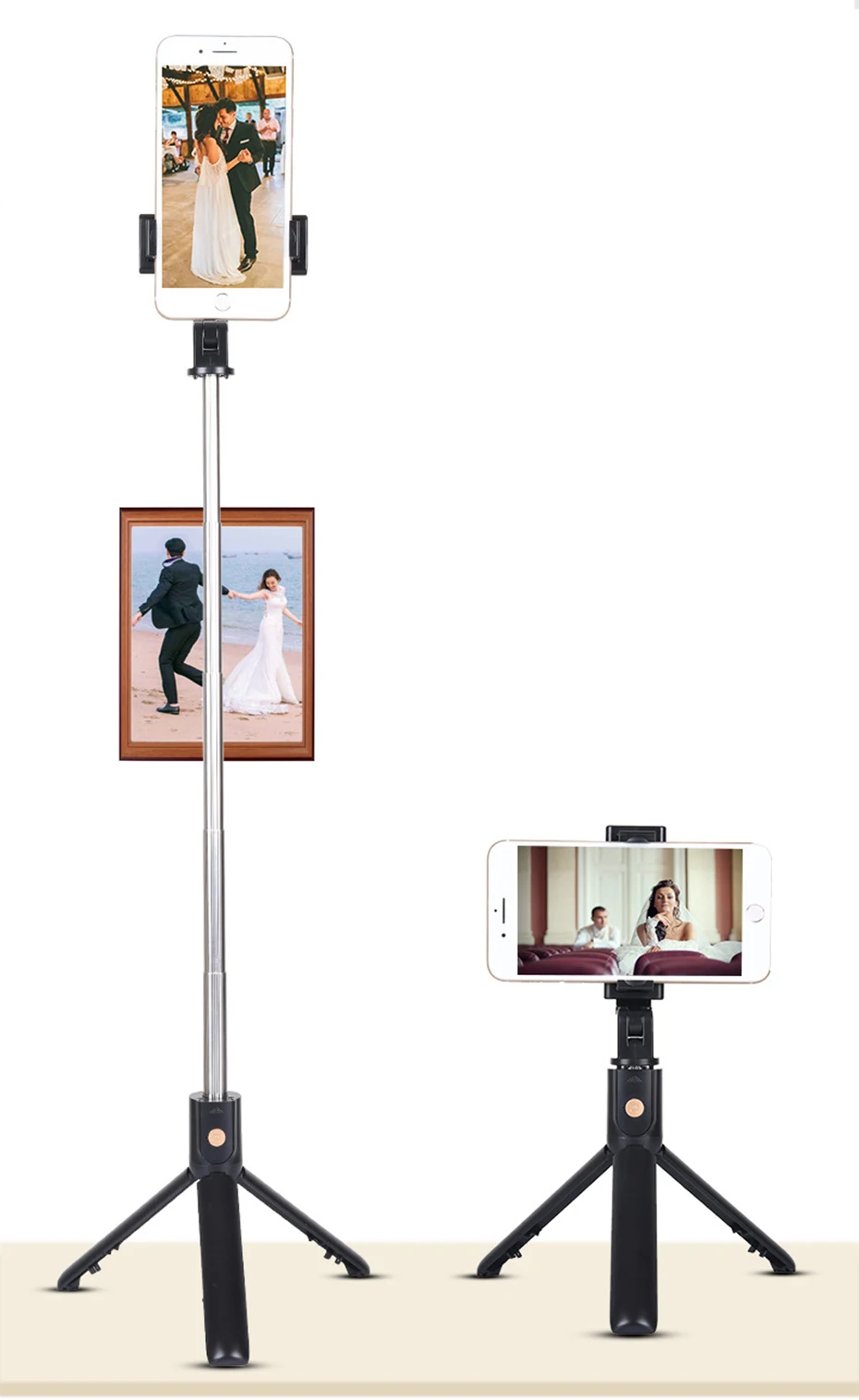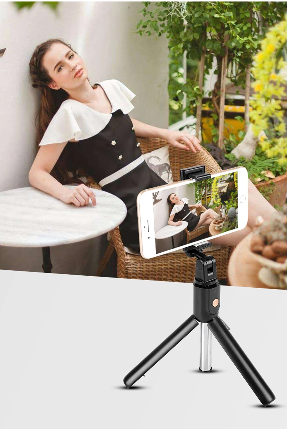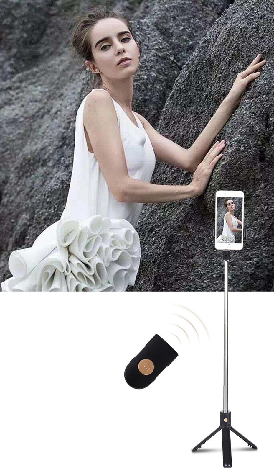 Foldable 3 in 1 Selfie Stick Tooth Stand Holder Selfiestick Mirror Remote Control Bluetooth Phone Tripod