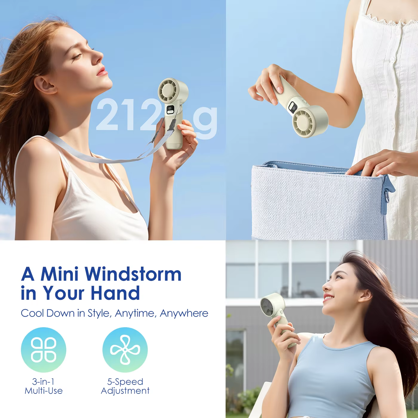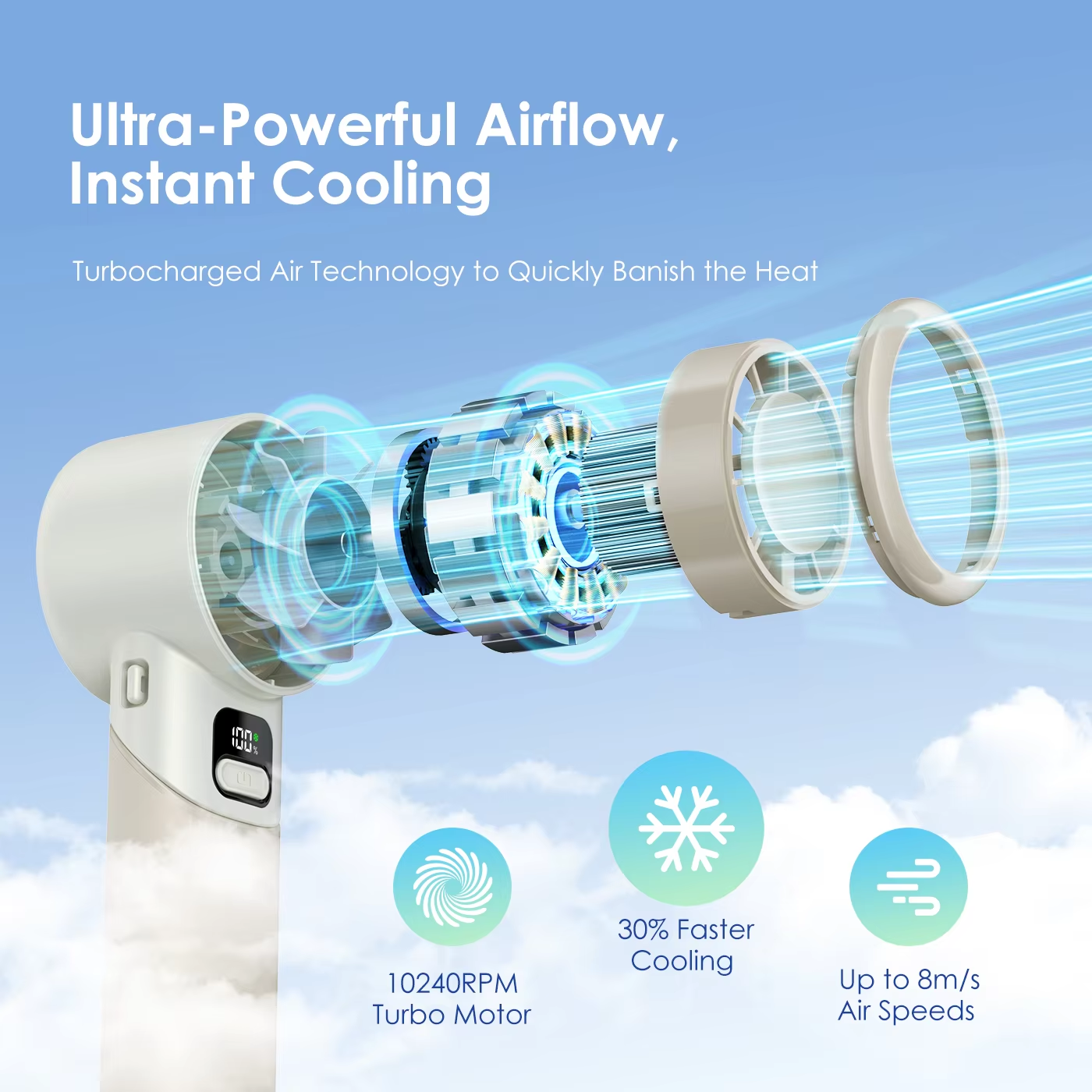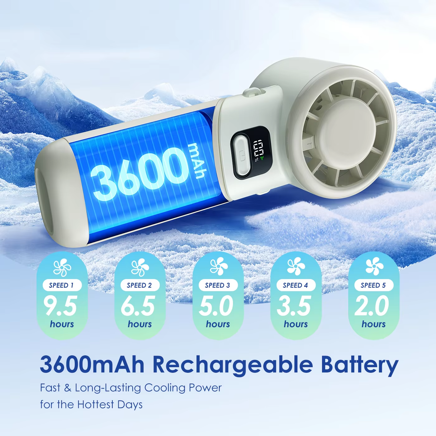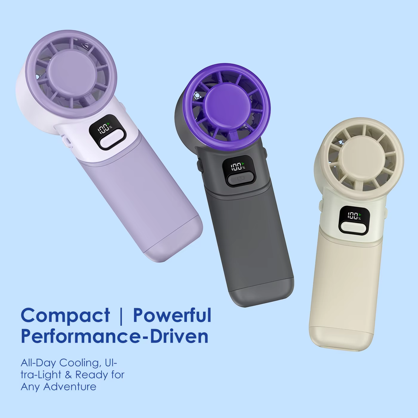 Folding Handheld Small Fan Small Turbine USB Charging Handheld Digital Display Mini Violent Fan