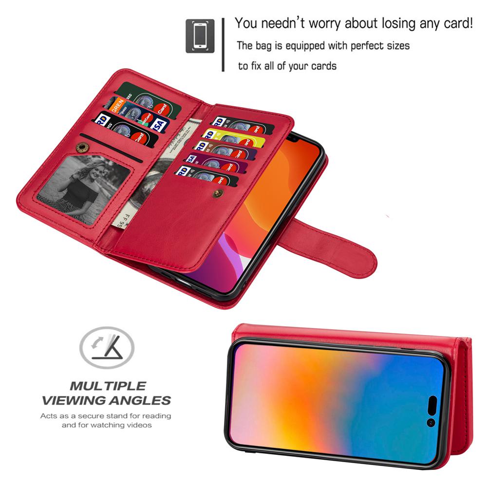 For iPhone 14 Pro Max Nine Card Two in One Split PU Leather Wallet Phone Case