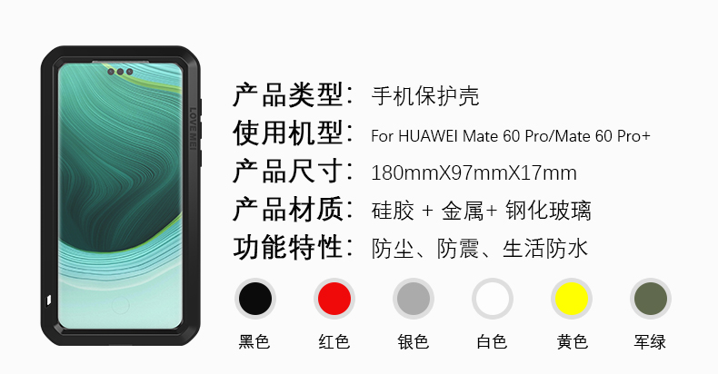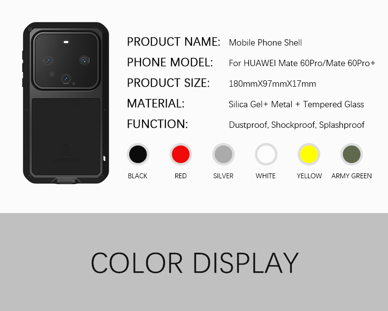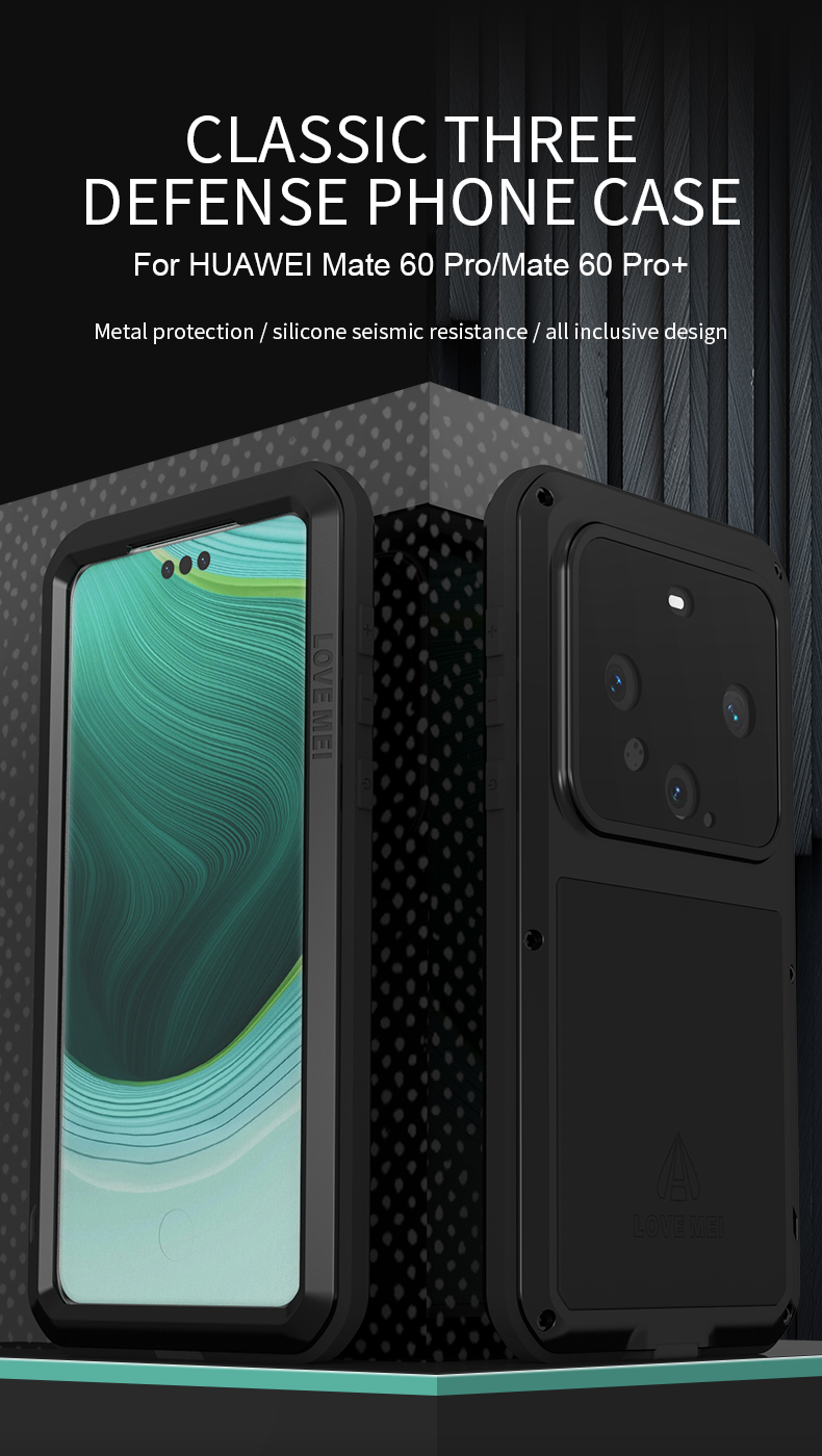 For Love mei Huawei Mate 60 Pro Phone Case Metal Armor Shockproof Silica gel Phone Cover Case