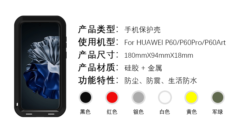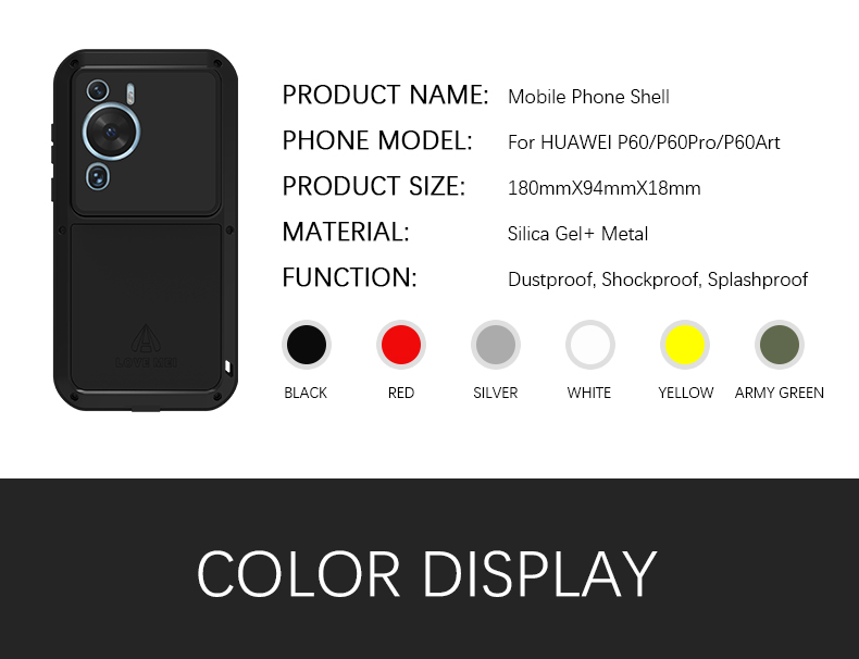 For Love mei Huawei P60 Phone Case Metal Armor Shockproof Silica gel Phone Cover Case