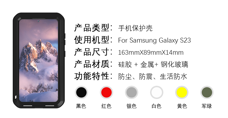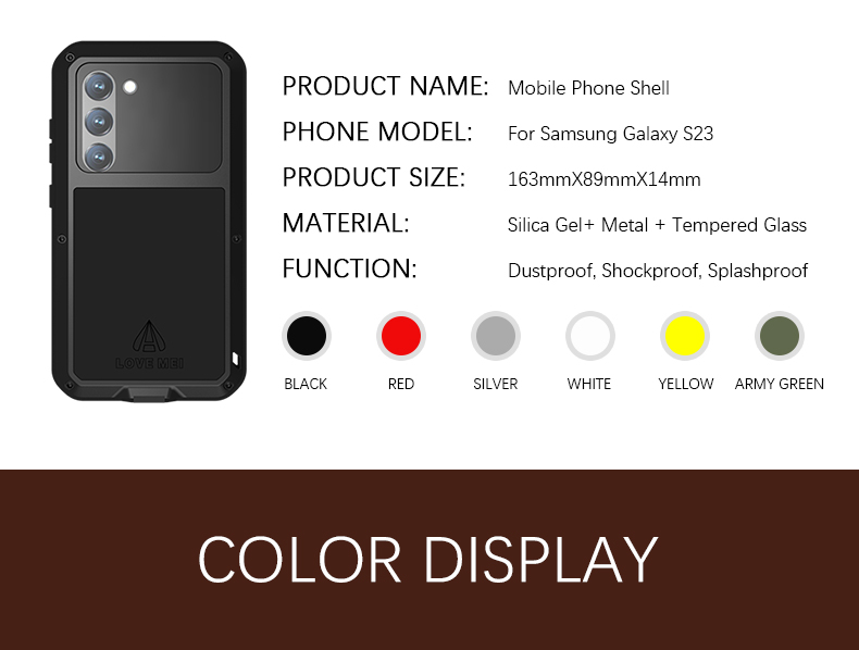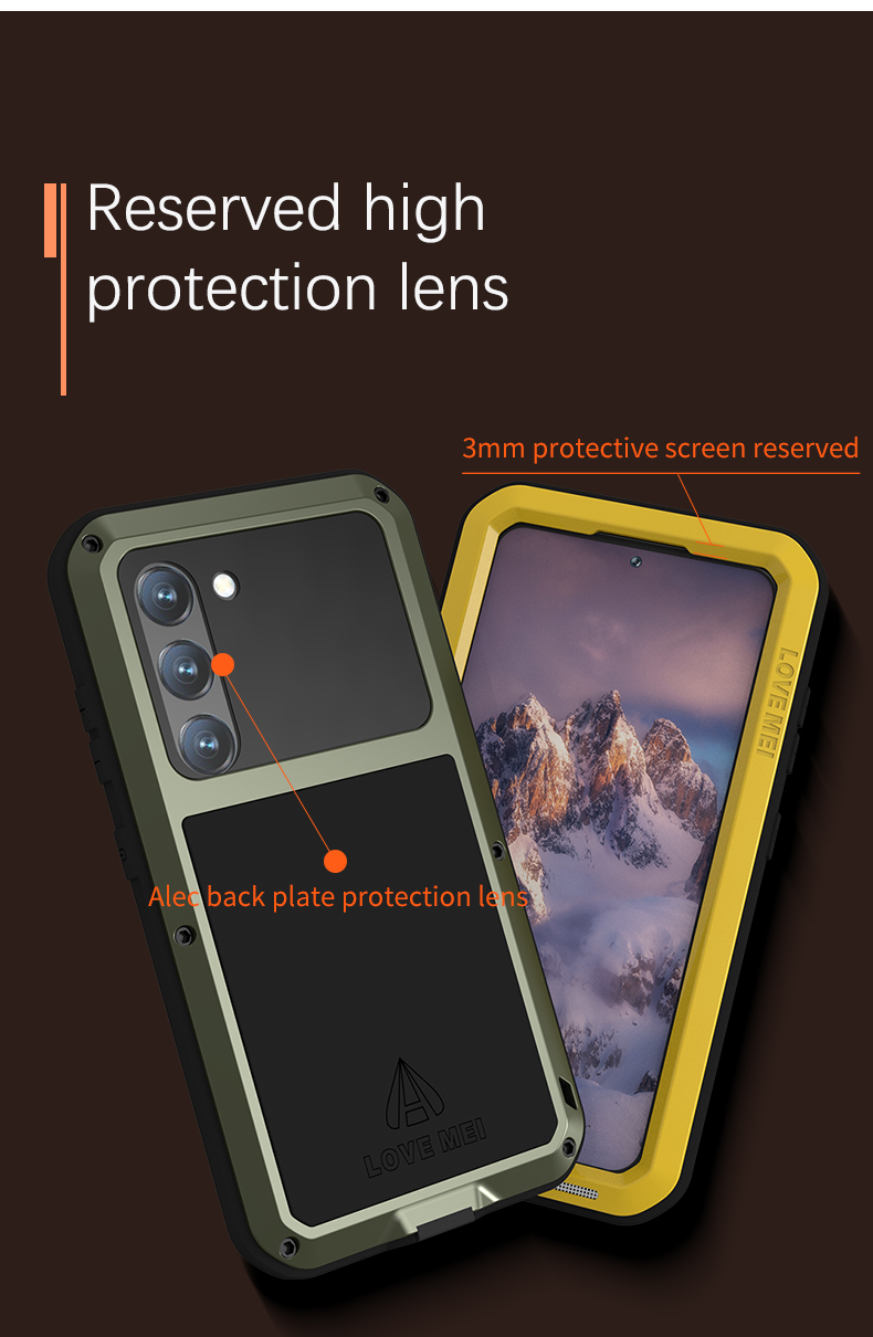 For Love mei Samsung Galaxy S23 Metal Armor Case Shockproof Silica gel Phone Cover Case