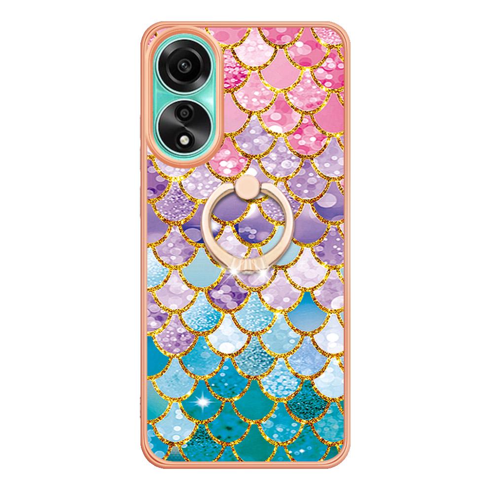 For OPPO A78 4G IMD Series-6 Ring Kickstand Feature Anti-wear Electroplated Frame TPU Case IMD Protective Back Cover