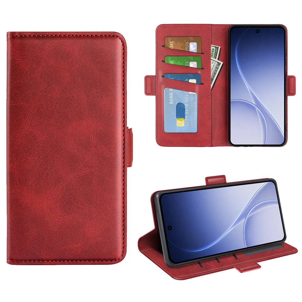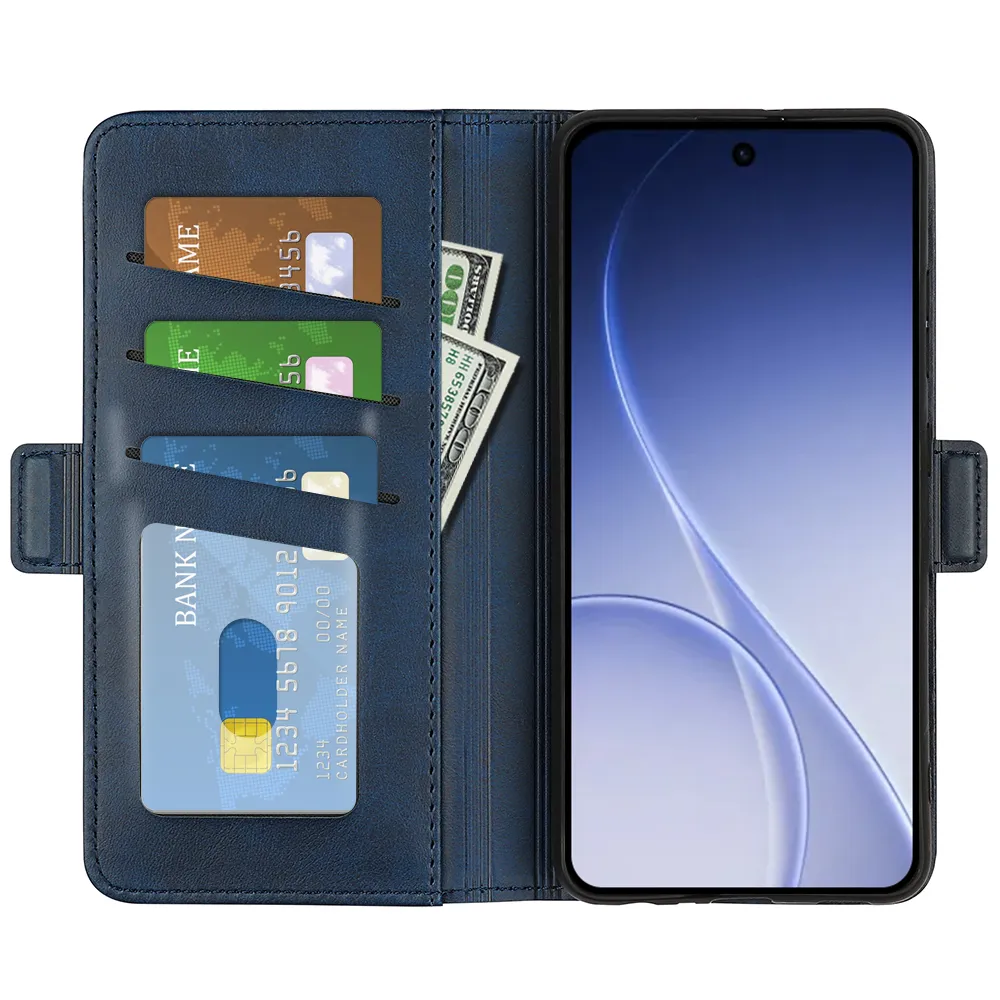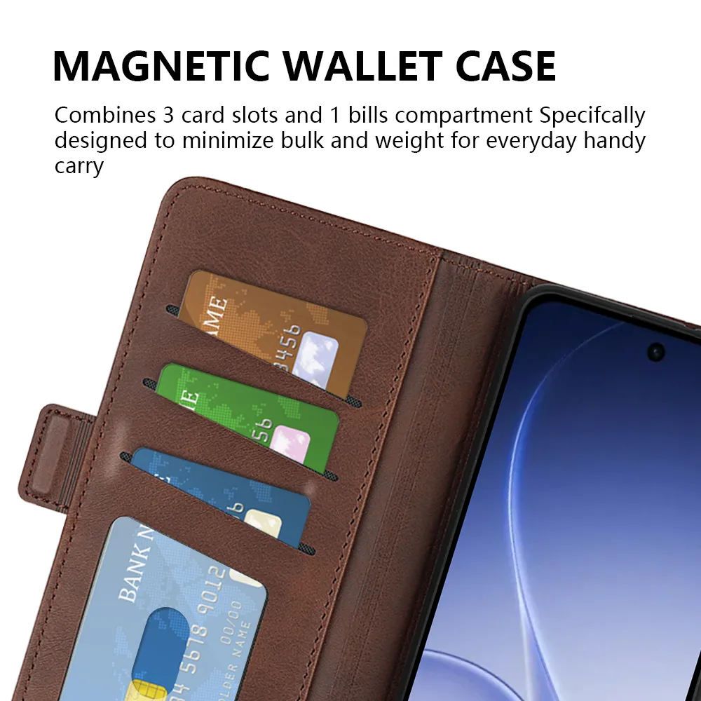 For OPPO Reno 15 5G Double Buckle Wallet Style Folio Flip Leather Case with Stand and Card Slots Function