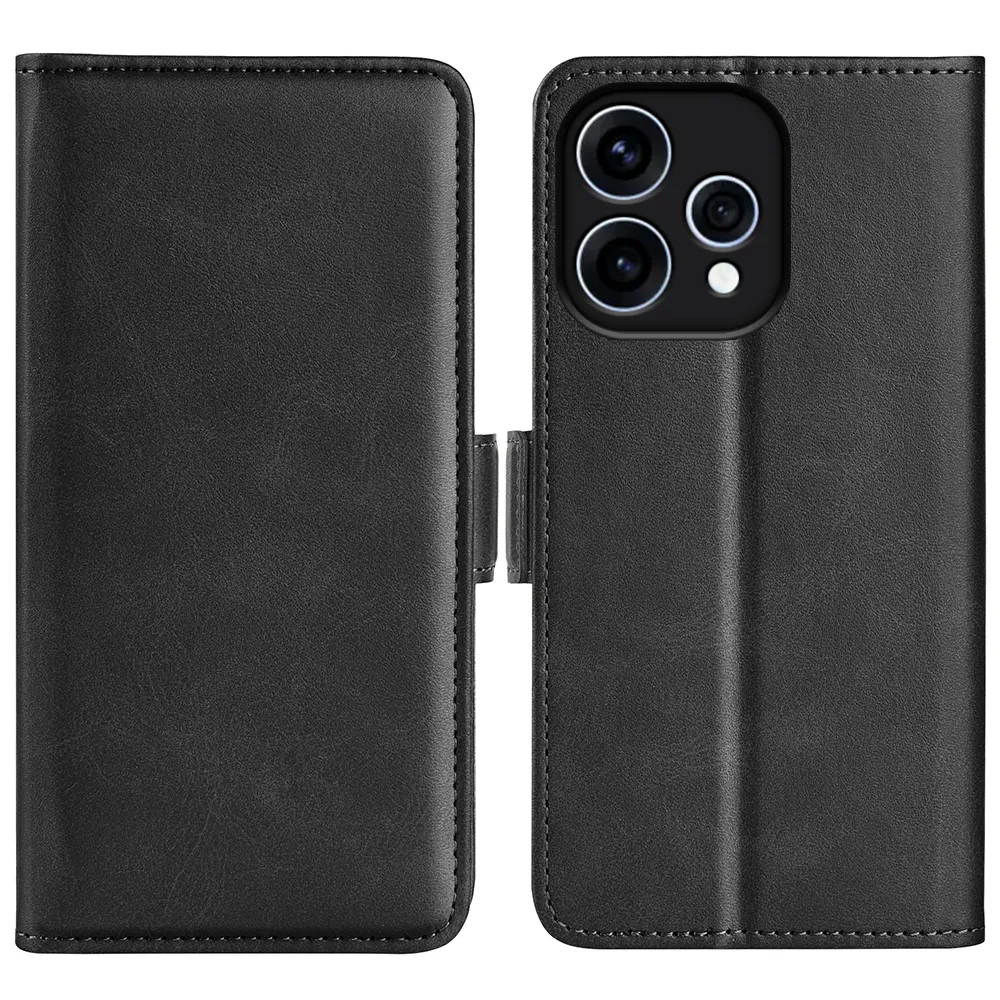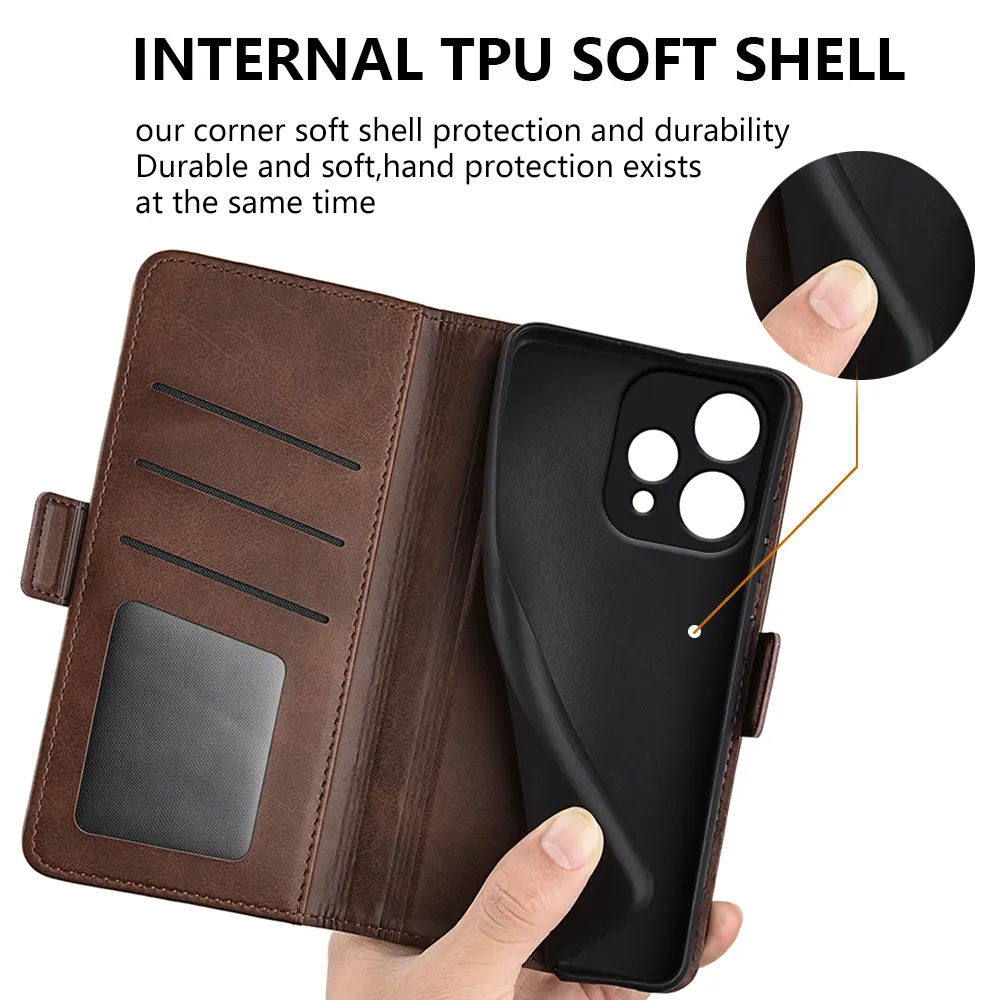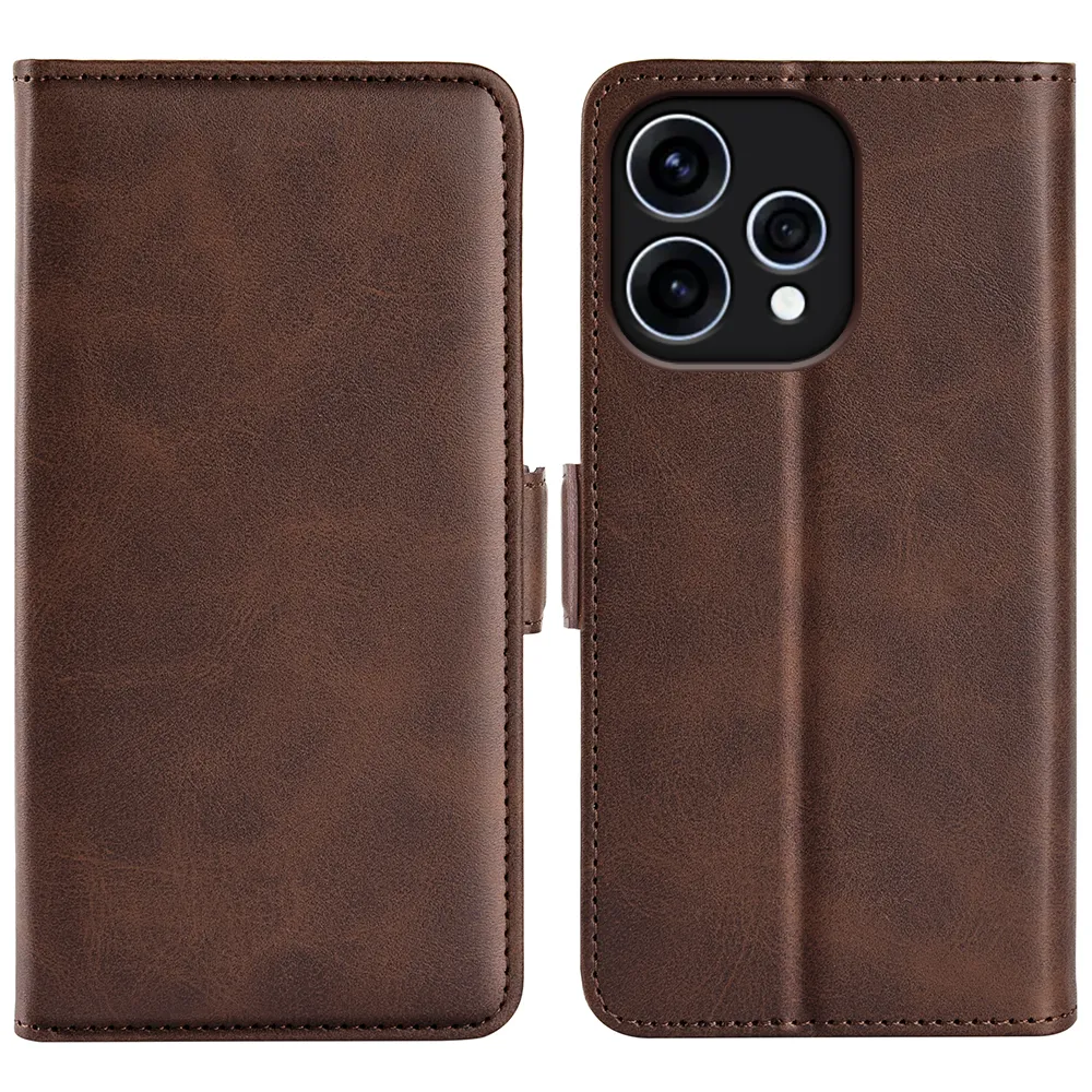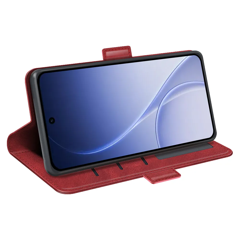 For OPPO Reno 15 5G Double Buckle Wallet Style Folio Flip Leather Case with Stand and Card Slots Function