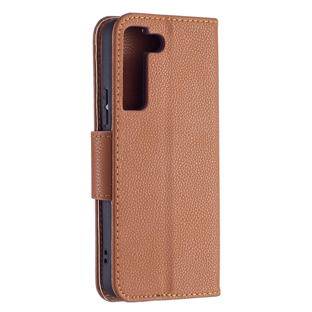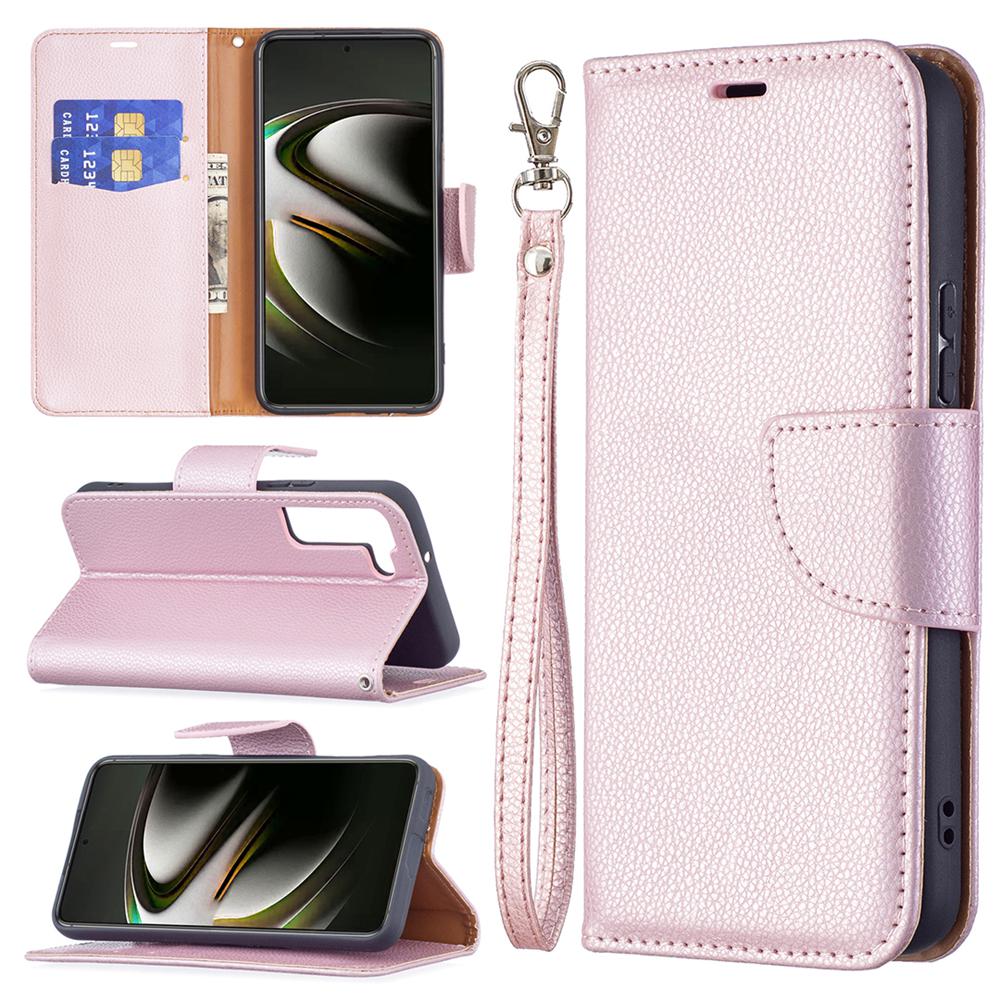 For Samsung Galaxy S22 Plus Solid Color Lychee Pattern Flip Leather Case with Card Slots & Stand Function