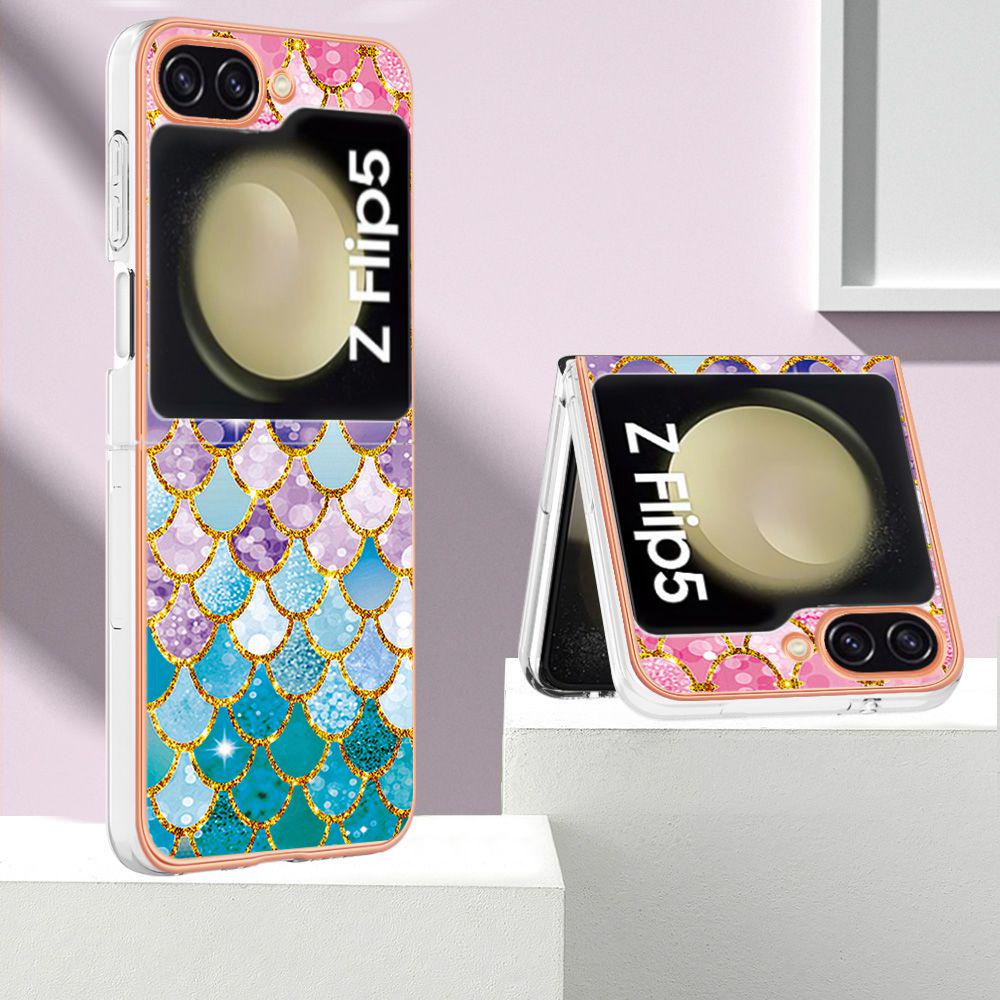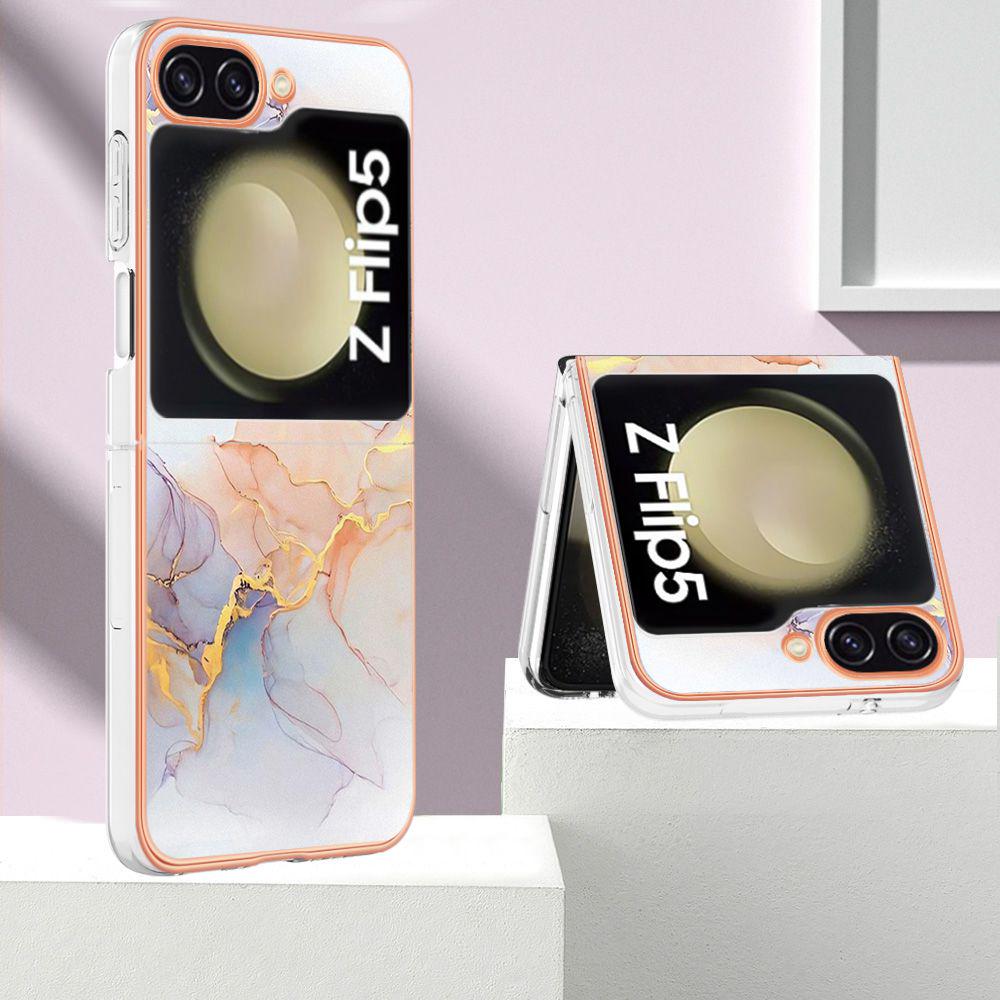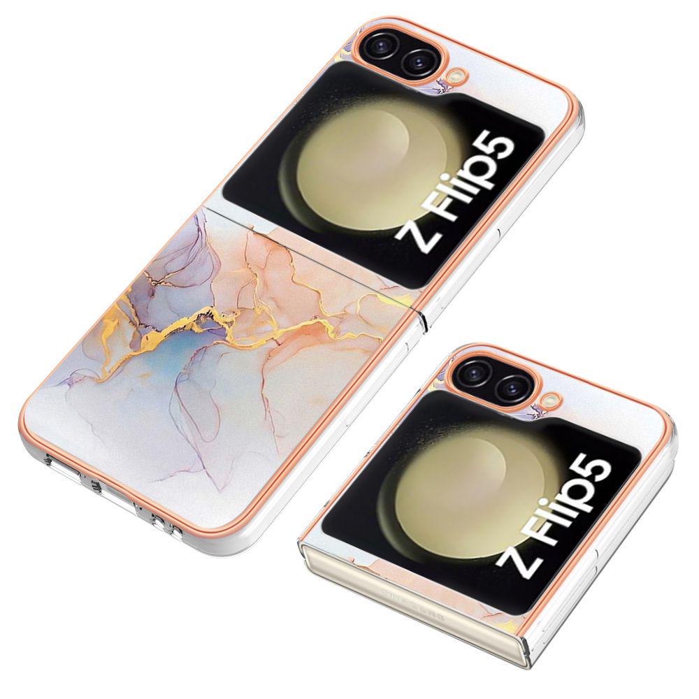 For Samsung Galaxy Z Flip5 IMD Anti-dirt Anti-scratch Soft TPU Case Electroplating Edge IMD Marble Floral Pattern Cover