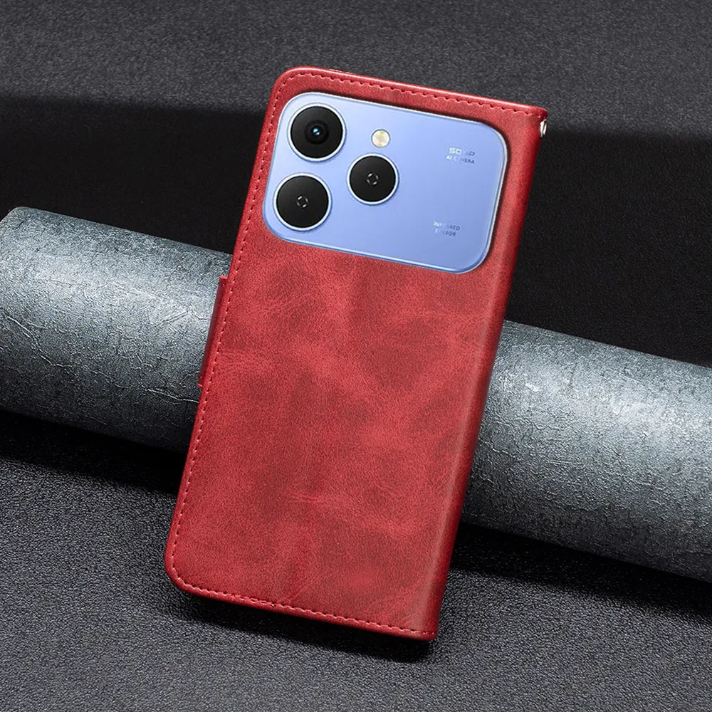 For Tecno Spark 40 Pro Plus Solid Color Sheep Pattern Scratch Resistant Wallet Leather Case