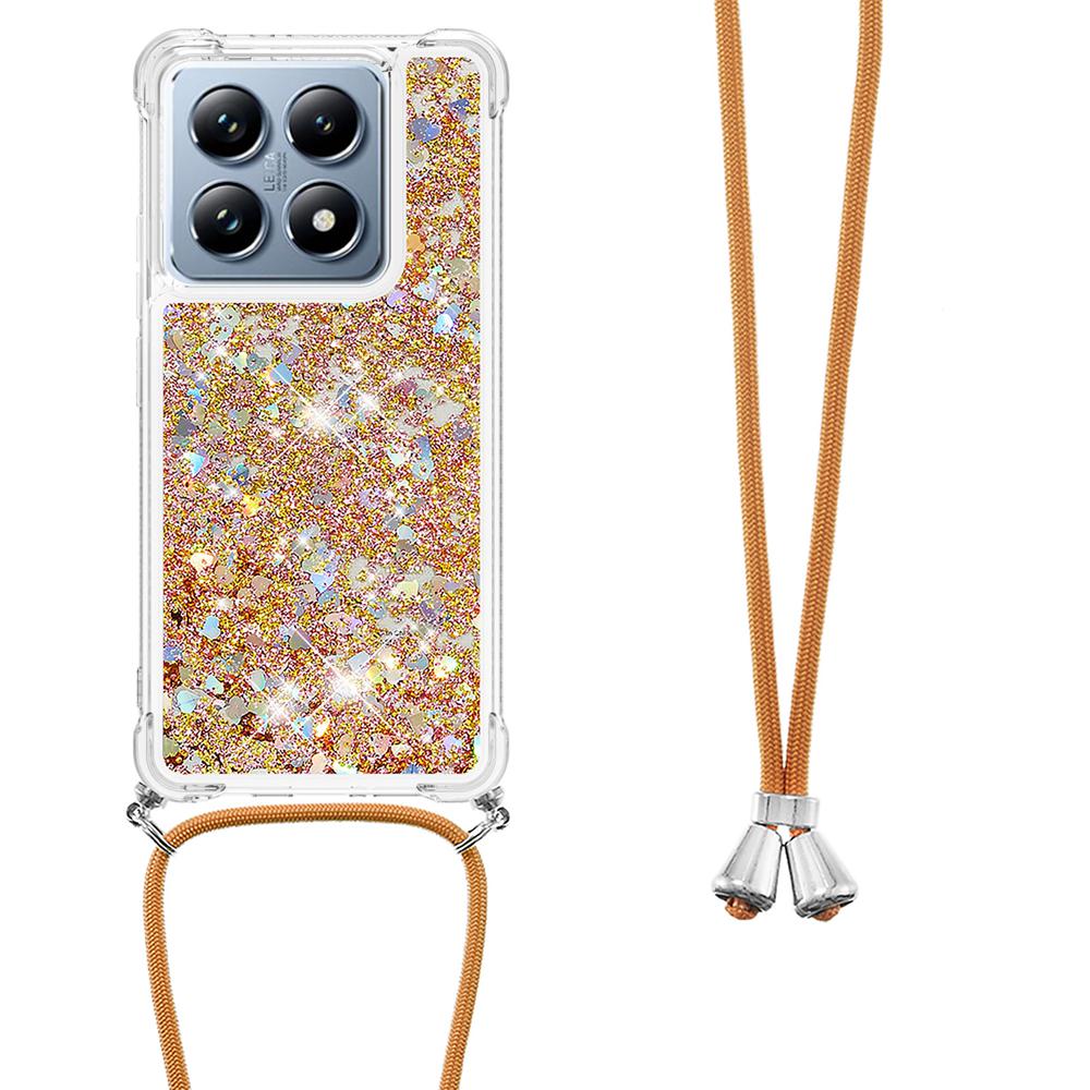 For Xiaomi 14T Pro Solid Color Anti-fall Quicksand Soft TPU Back Phone Cover with Lanyard