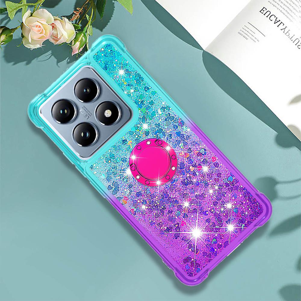 For Xiaomi 14T Ring Buckle Anti-fall Scratch Resistant Gradient Quicksand Soft TPU Back Cover Phone Case