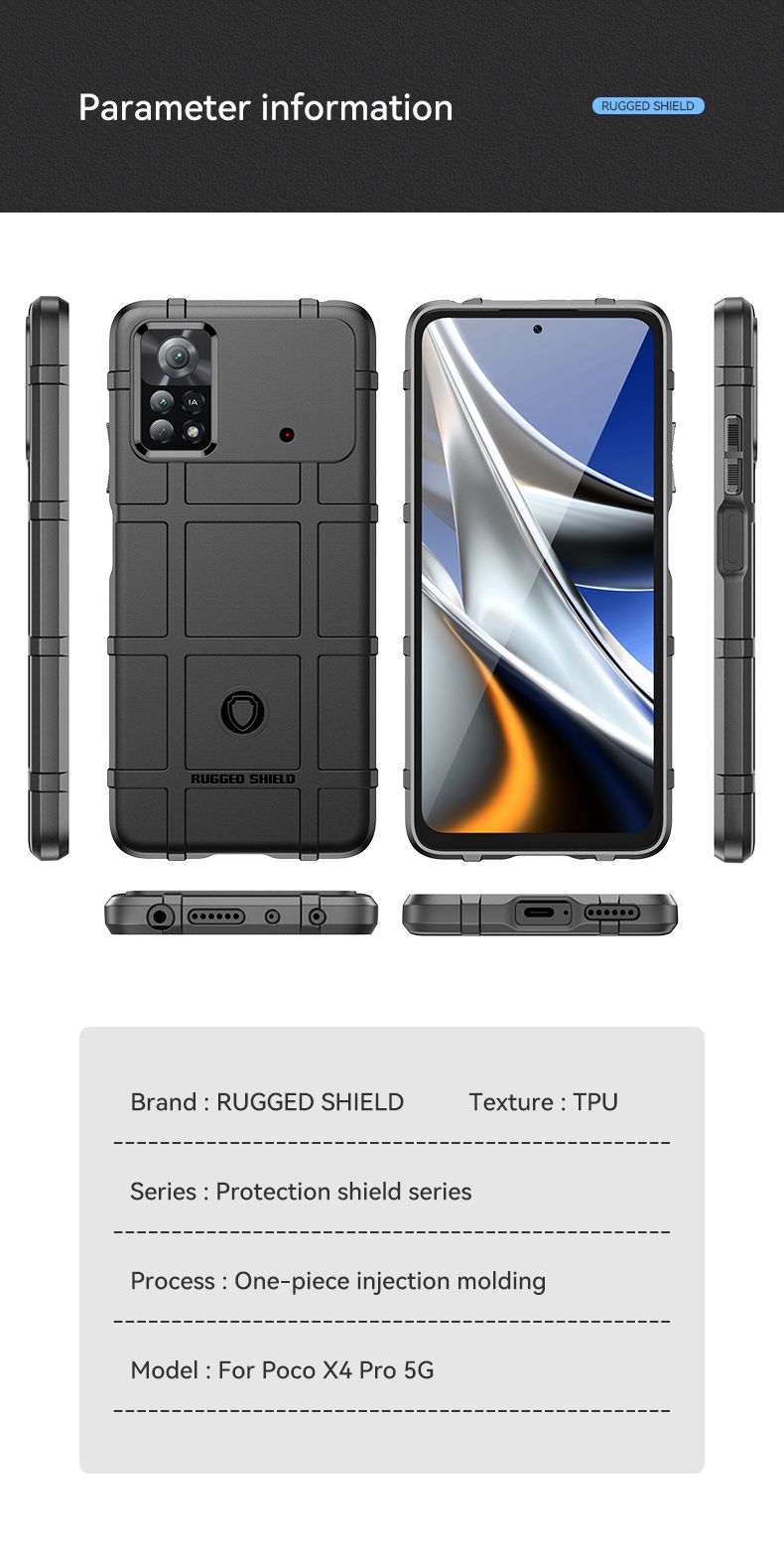 For Xiaomi Poco X4 Pro 5G Rugged Shield Detachable Shockproof Frosted All-Inclusive Flexible TPU Cover Case