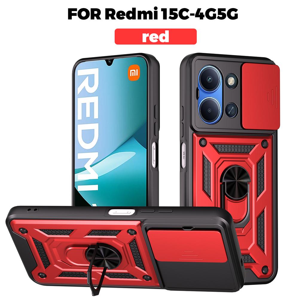 For Xiaomi Redmi 15C (171.6mm) Ring Holder Kickstand Camera Slide Cover Design PC + TPU Phone Back Cover Case