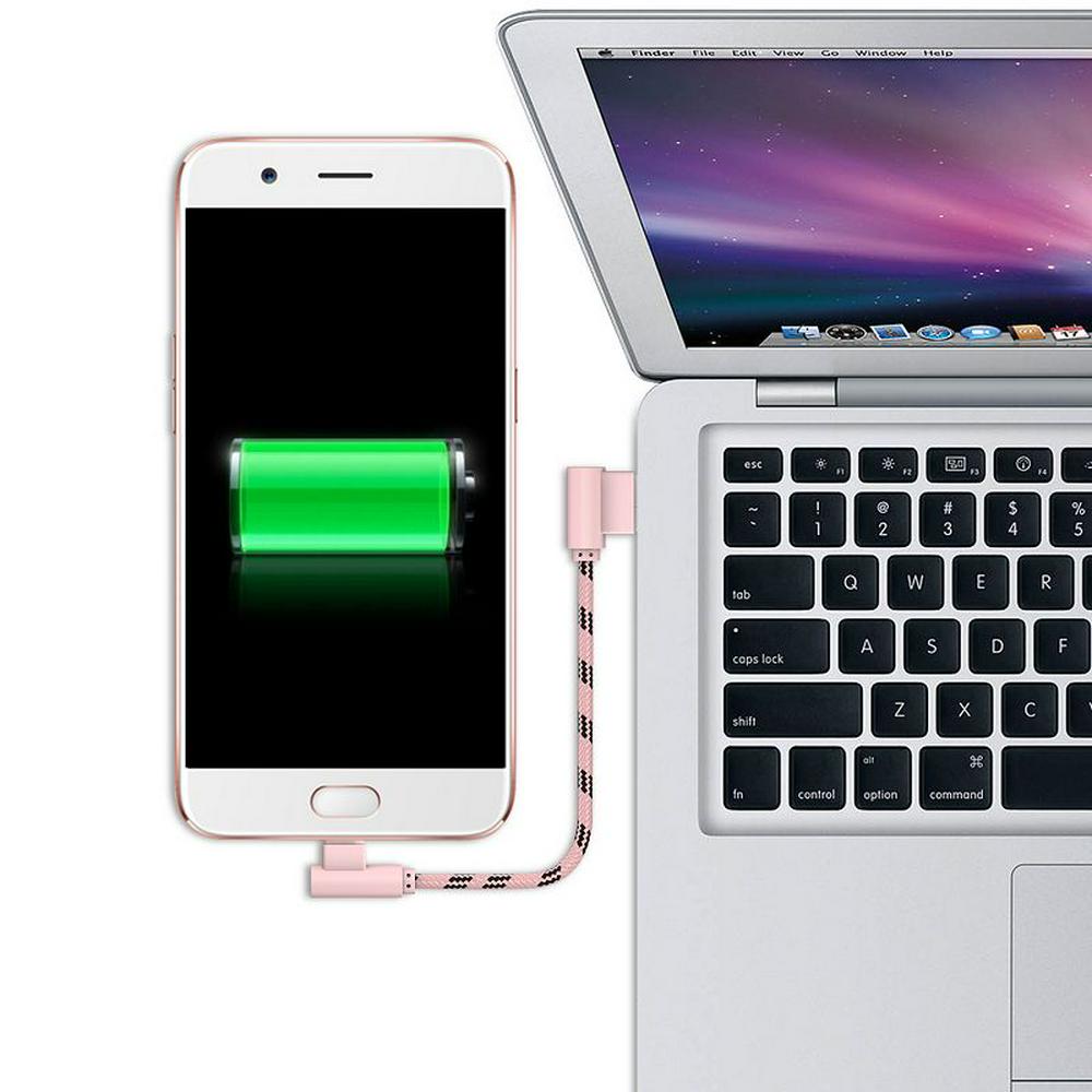 FT-UCA86 Micro 5 Pin 20cm 90° L-Head Nylon Braided USB Cable Charging & Data Syncing Data Line Wire