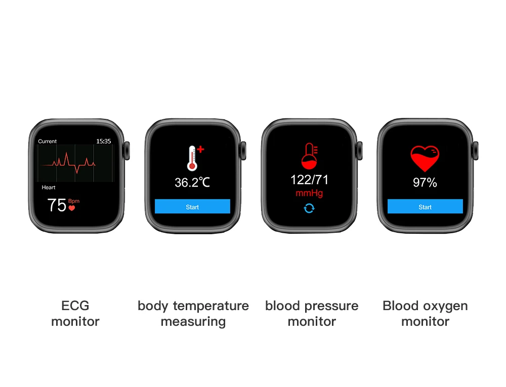 Health monitoring: heart rate / blood pressure / blood oxygen / ECG / body temperature measurement, sedentary reminder, sleep monitoring