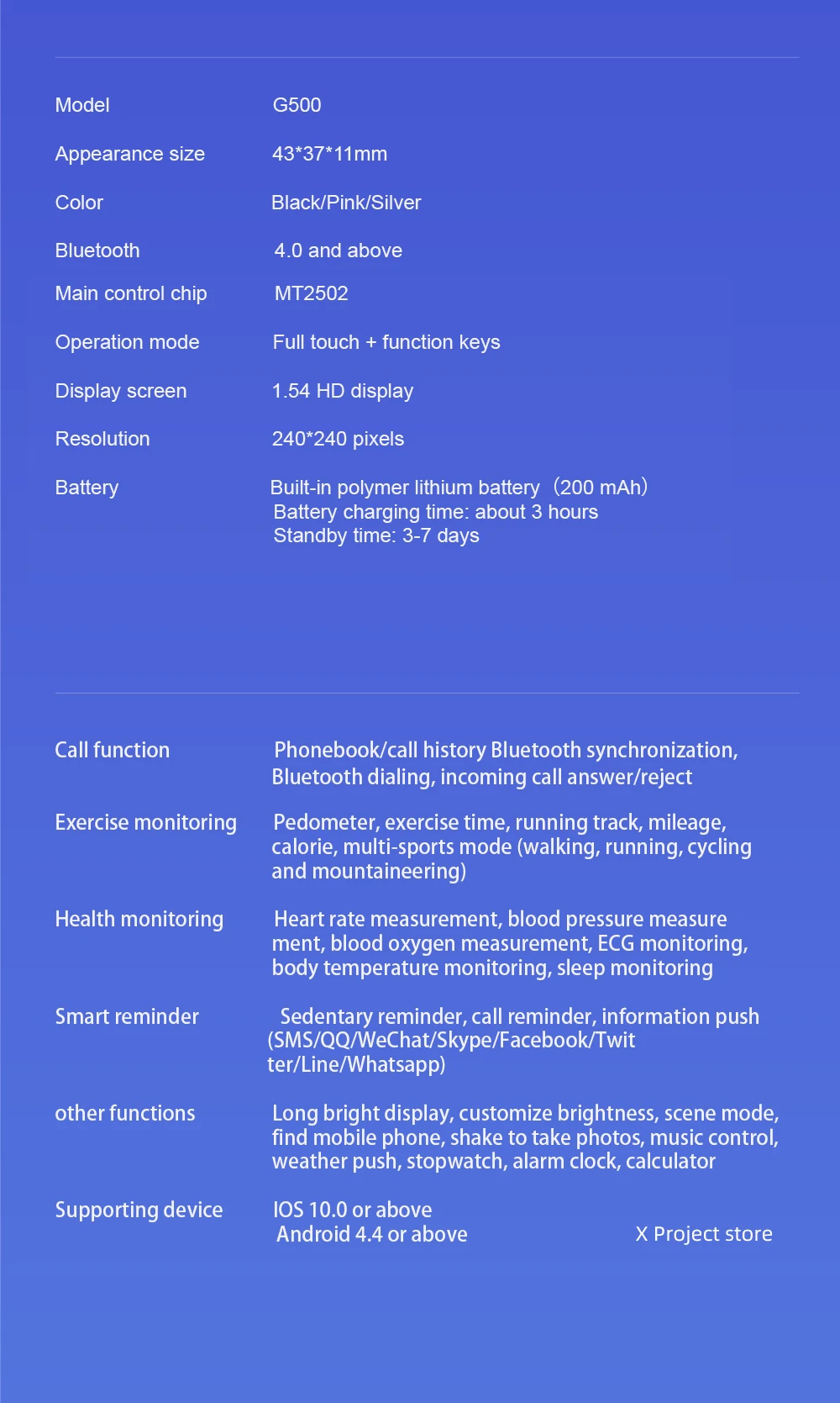 Fitness watch store- G500
